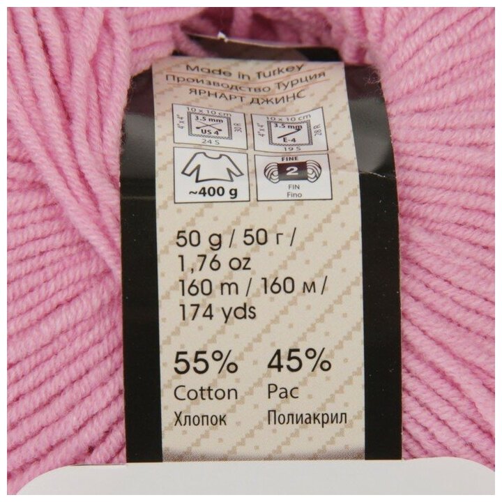 Пряжа YarnArt Jeans розовый (36), 55%хлопок/45%акрил, 160м, 50г, 1шт
