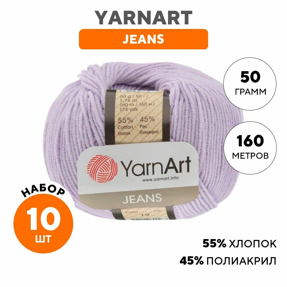Пряжа для вязания YarnArt 'Jeans', 50г, 160м (55% хлопок, 45% полиакрил) (19 светло-сиреневый), 10 мотков