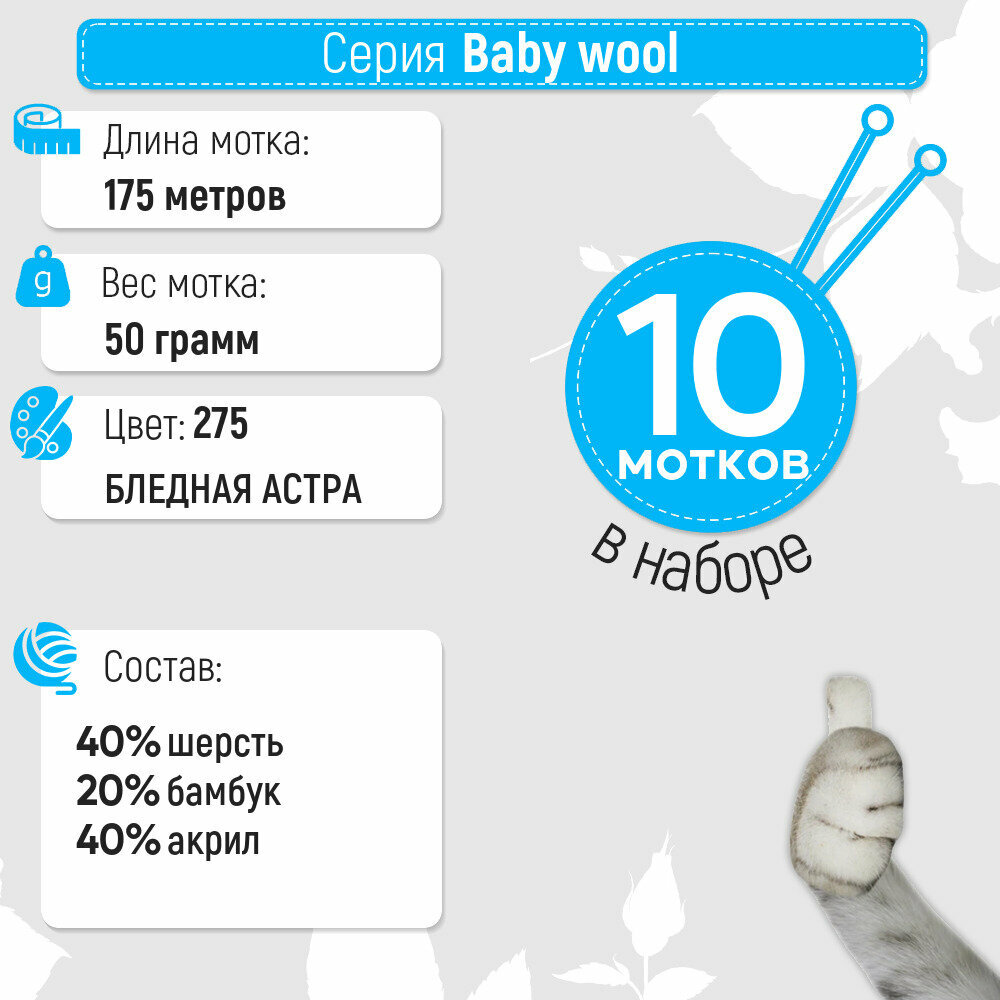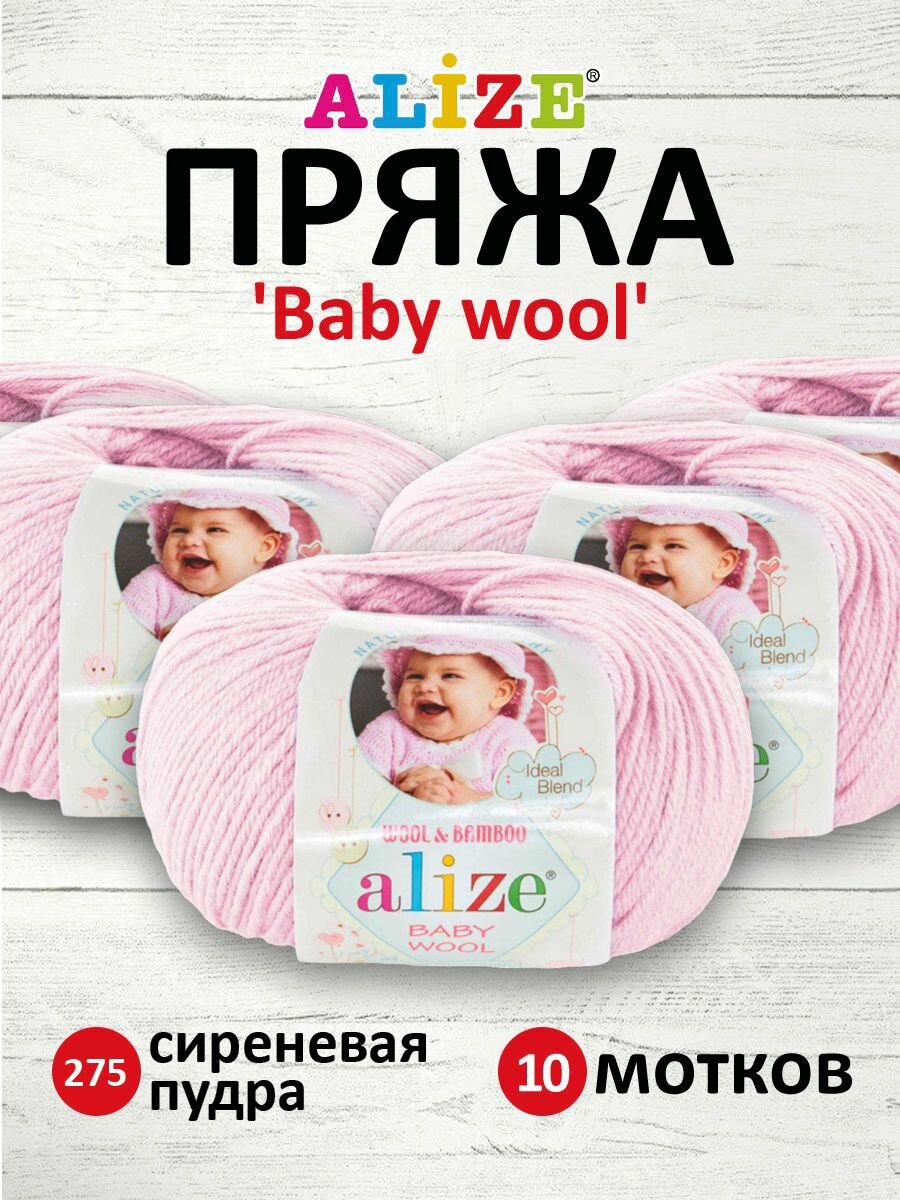 СохранитьПряжа для вязания Alize Baby Wool 275 сиреневая пудра, 50 г, 175 м, 10 штук интересное: