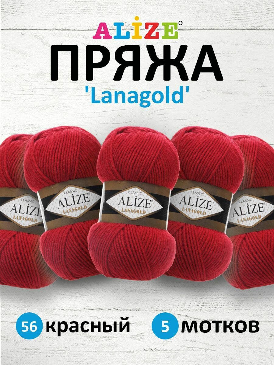 Пряжа Alize Lanagold (Ланаголд) цвет красный 56, 49% шерсть, 51% акрил 100г 240м 5шт