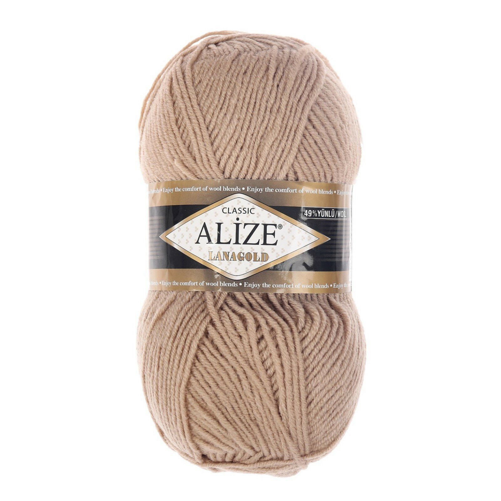 Пряжа Alize Lanagold (Ланаголд) - 2 шт Цвет: 466 темно-бежевый 49% шерсть, 51% акрил 100г 240м