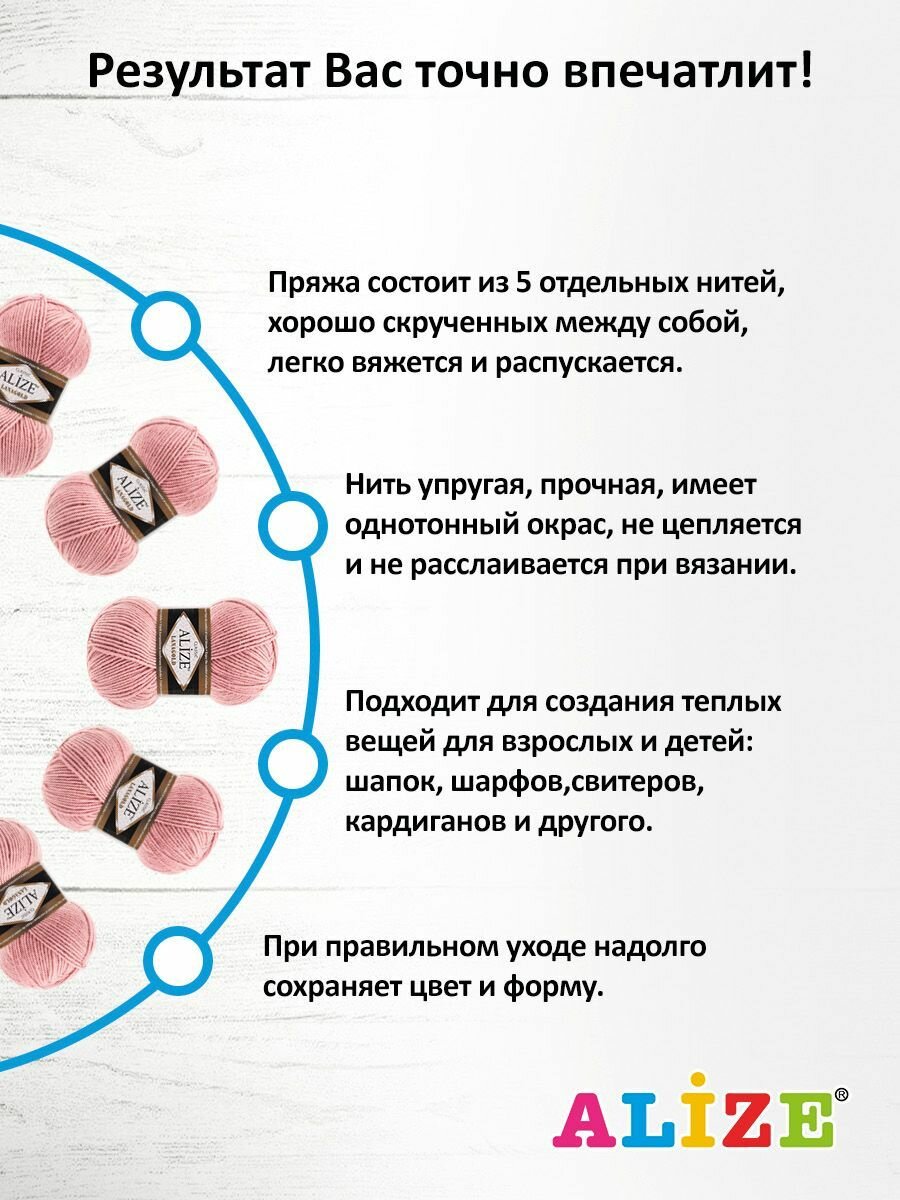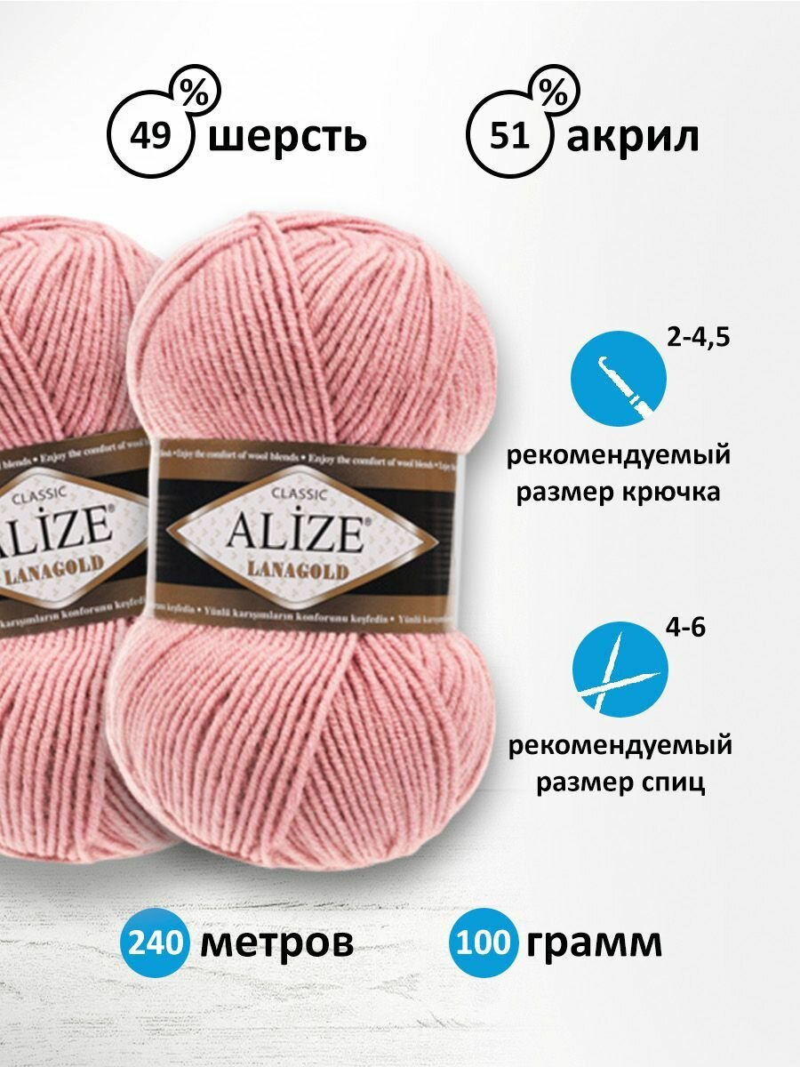 СохранитьПряжа ALIZE LANAGOLD, пудра - 161, 49% шерсть, 51% акрил, 5 мотков, 100 г., 240 м. интересное:
