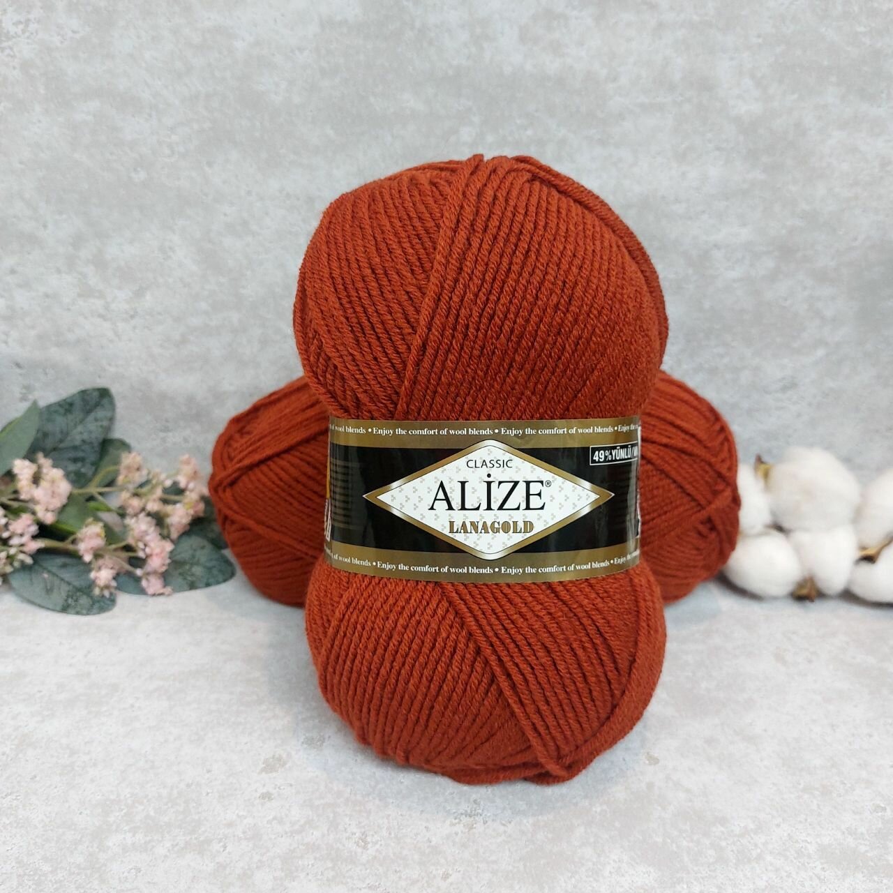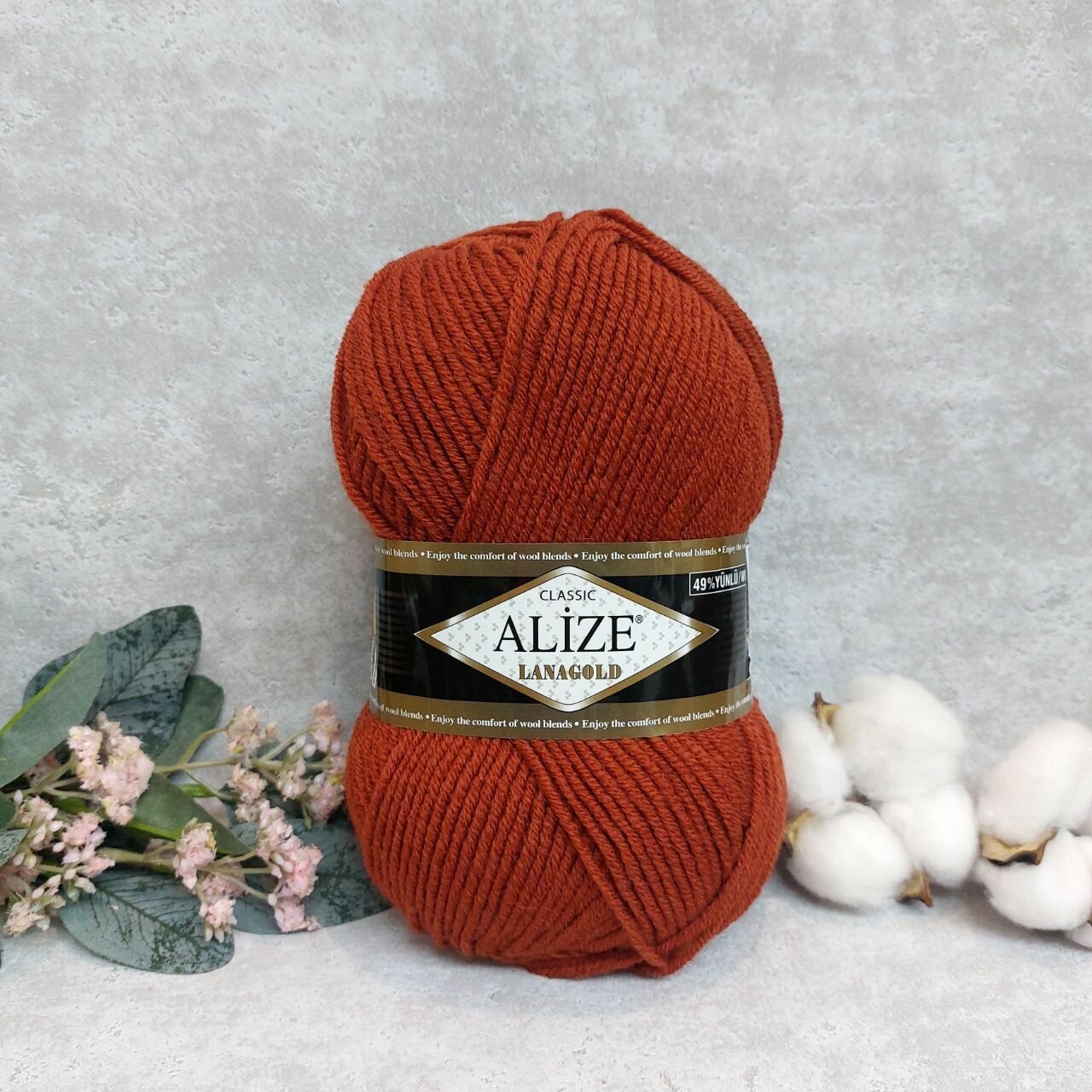 Пряжа Alize Lanagold (Ланаголд) цвет терракот 36, 49% шерсть, 51% акрил 100г 240м 5шт
