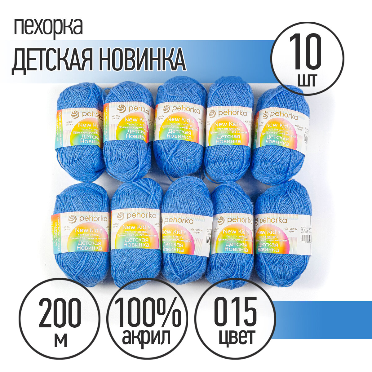 Пряжа для вязания Пехорка 'Детская новинка' 50г, 200м (100% акрил) (73 айсберг), 10 мотков