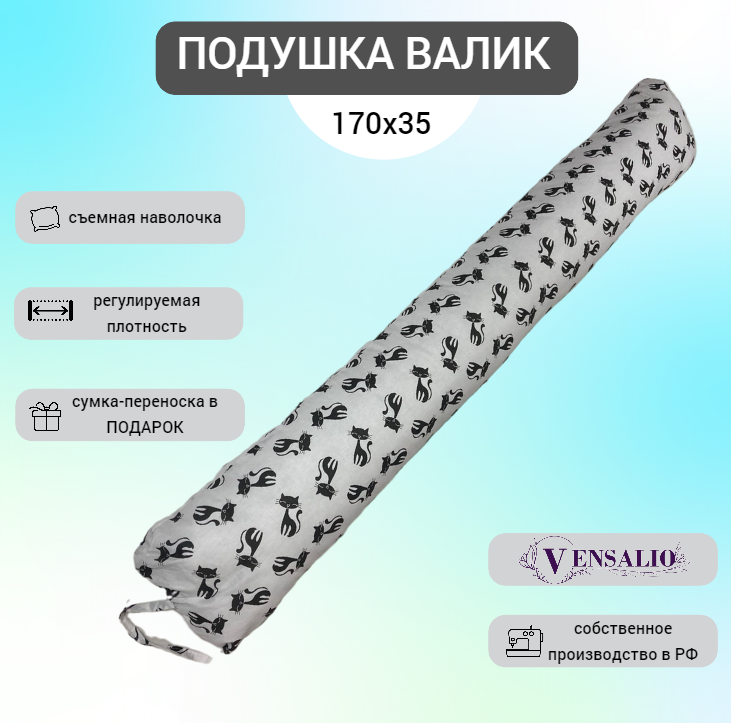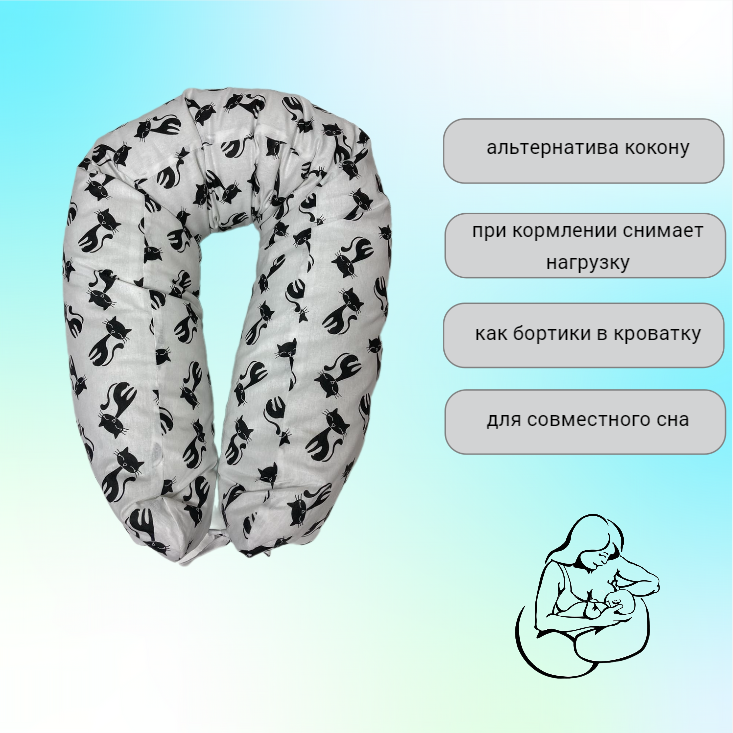 СохранитьПодушка для беременных Vensalio I-170 обнимашка "Кошки", черная с белым, 170x35 интересное: