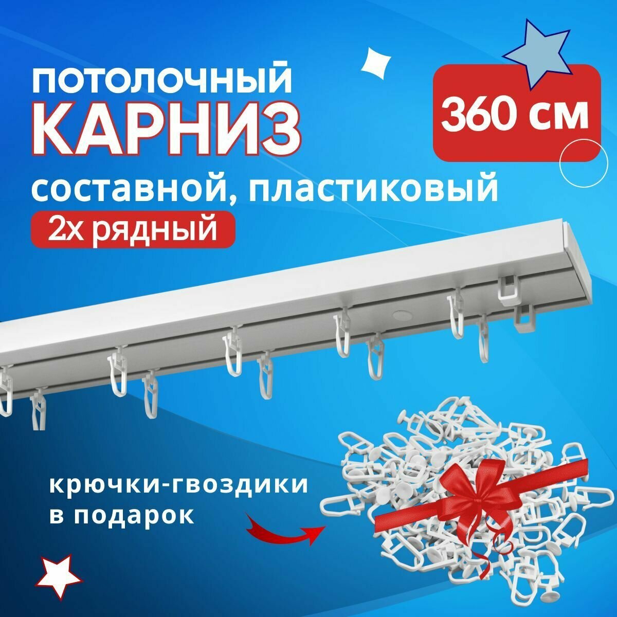 Карниз для штор пластмассовый потолочный составной из трех частей двухрядный 360 см