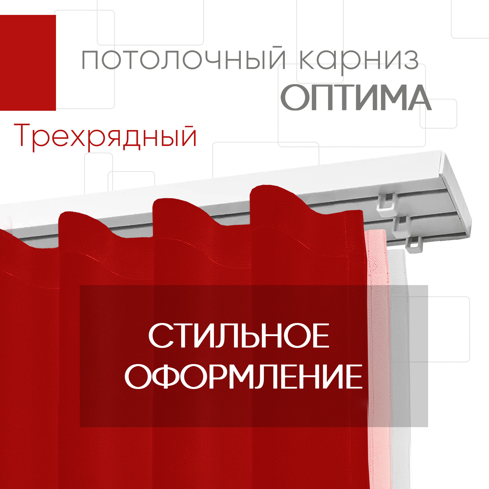 Пластиковый карниз для штор, трехрядный, составной Оптима 300 см