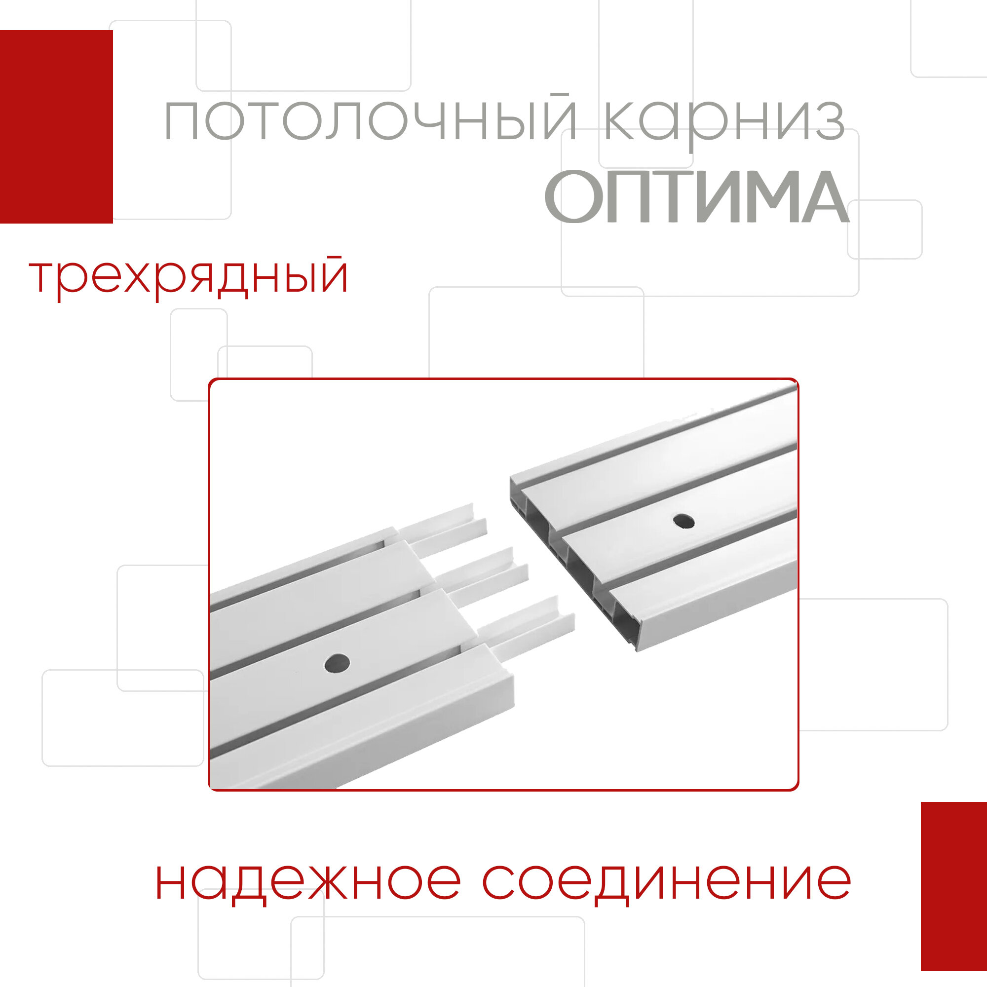 Карниз потолочный для штор, Трехрядный, Пластмассовый, цвет Белый, Оптима Уют, 240 см, Составной из двух частей