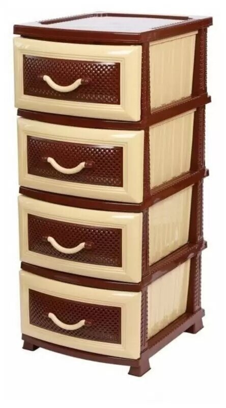Комод пластиковый Росспласт 4-х секционный, "Дельфин", цвет бежево-коричневый (1593615)