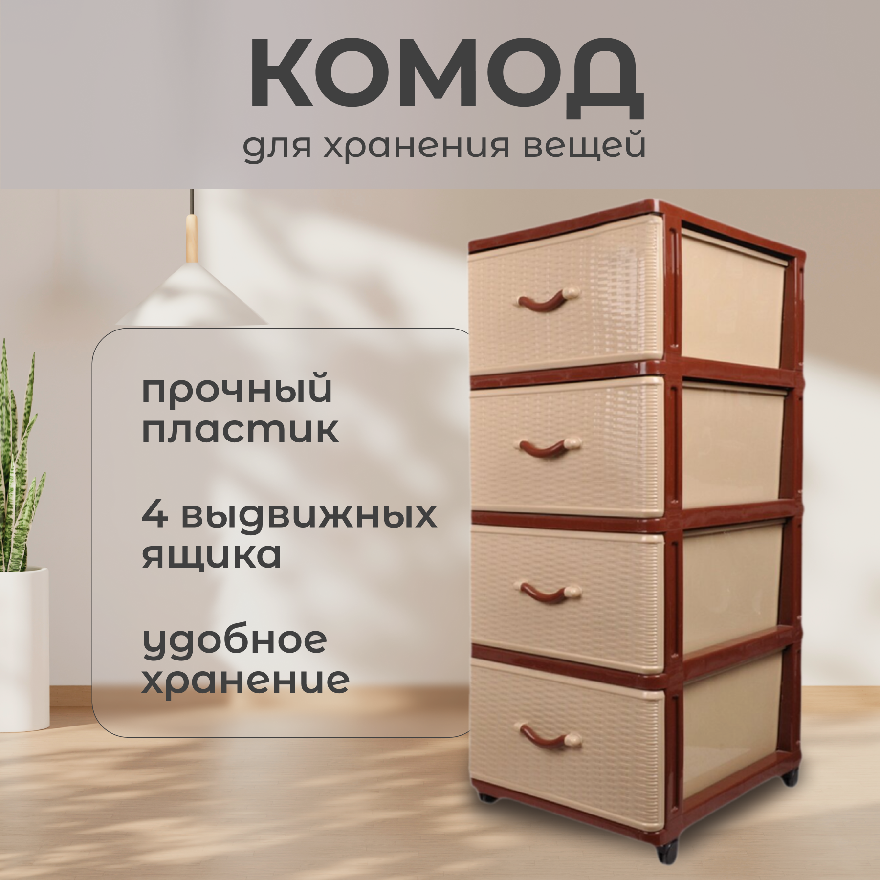 Комод пластиковый 4 секции плетеный Дунья 04054 кремовый