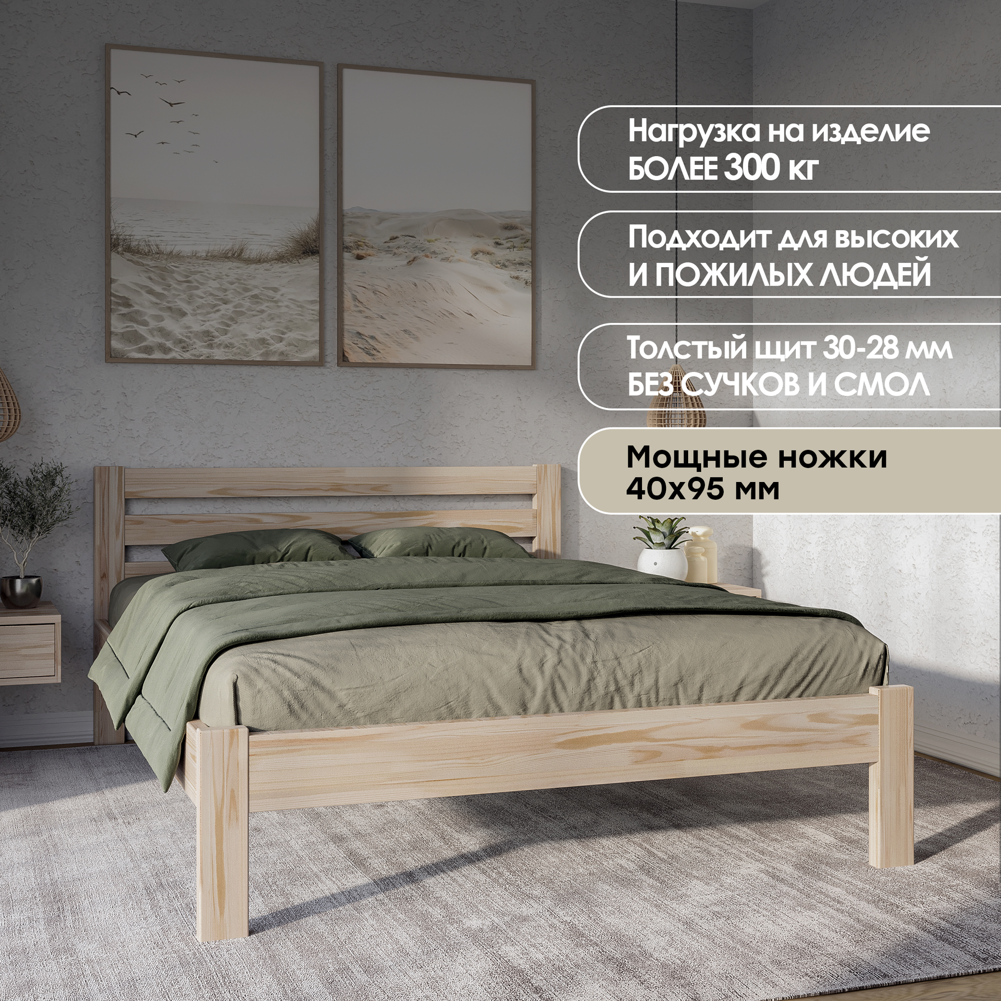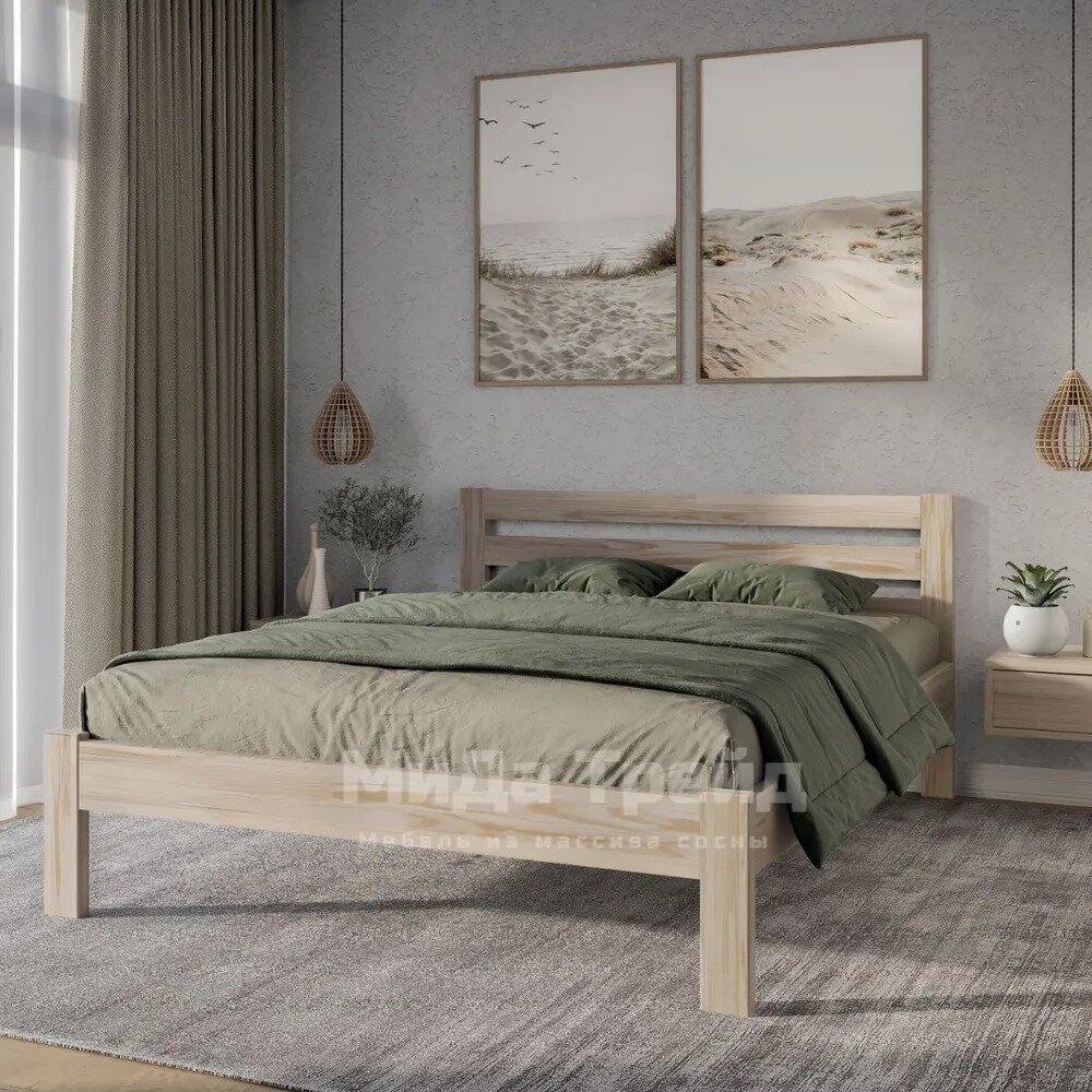 Кровать двуспальная деревянная 140х200 см "Амелия", массив сосны, без покраски МиДа-Трейд