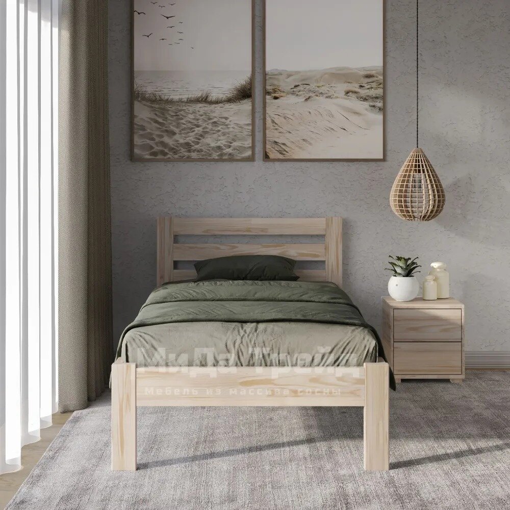 Кровать односпальная деревянная 80х200 см "Амелия", массив сосны, без покраски МиДа-Трейд
