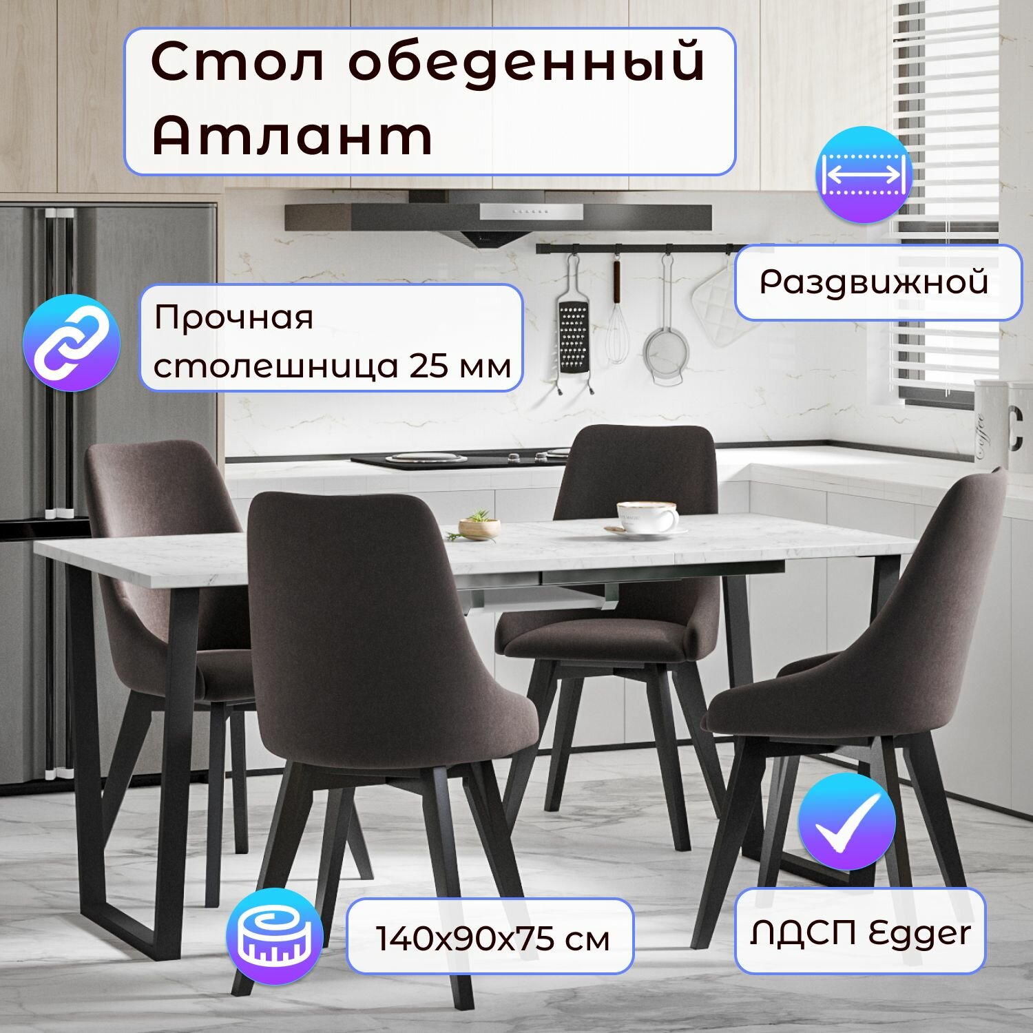 Стол обеденный атлант 12 EGGER: Древесина белая