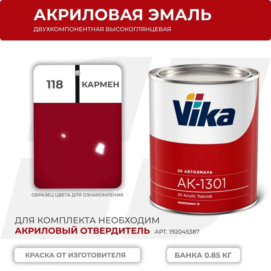 VIKA акриловая автоэмаль АК-1301 Кармен 118 0,85 кг.