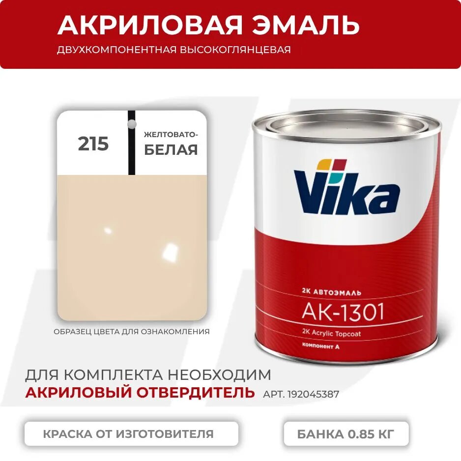 Комплект Автоэмаль акриловая Vika AK-1301 Желтовато-белая 215 с отвердителем