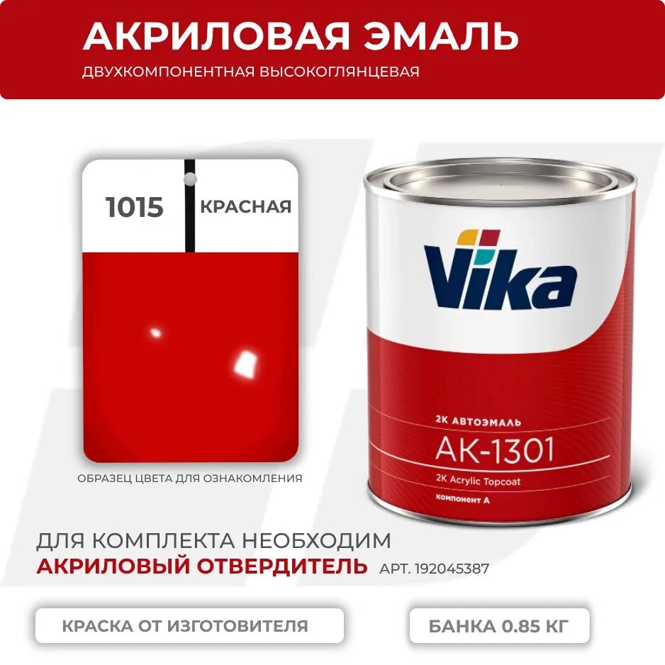 Автоэмаль акриловая 1015 Красная VIKA АК-1301 2К, уп.0,85кг