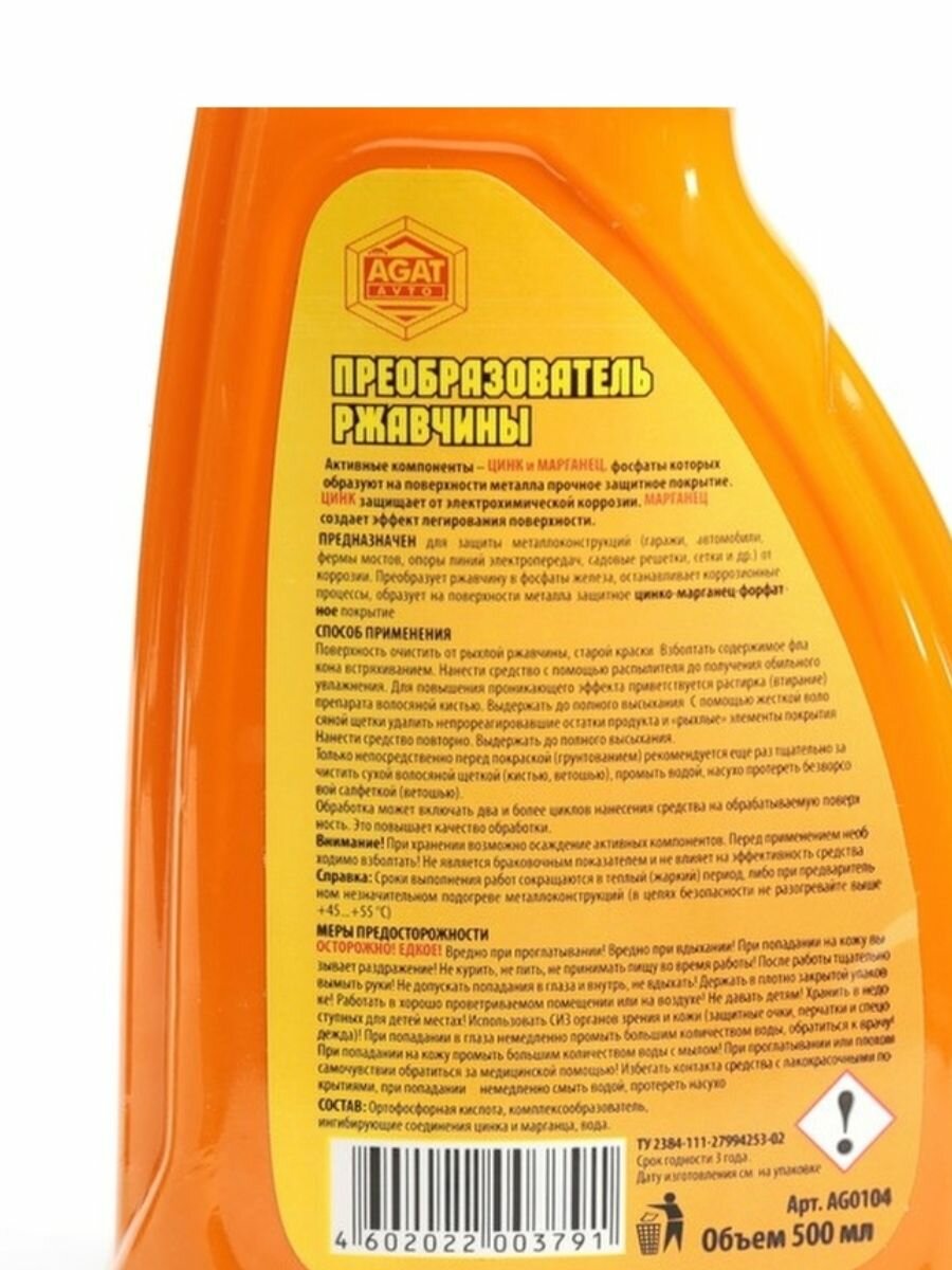 Преобразователь ржавчины цинкарь AGAT AVTO (триггер) 500 мл AGAT AVTO AGAT Avto AG0104