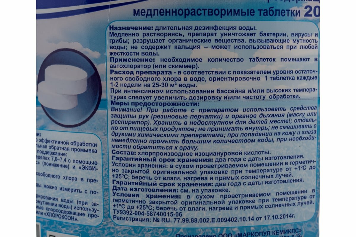 Медленнорастворимые таблетки для хлорной дезинфекции маркопул кемиклс Лонгафор