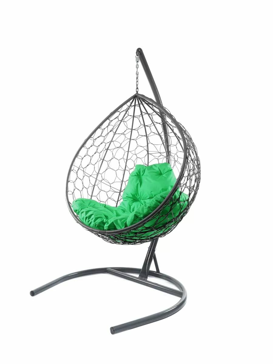 Подвесное кресло капля ротанг черное(без стойки), зелёная подушка