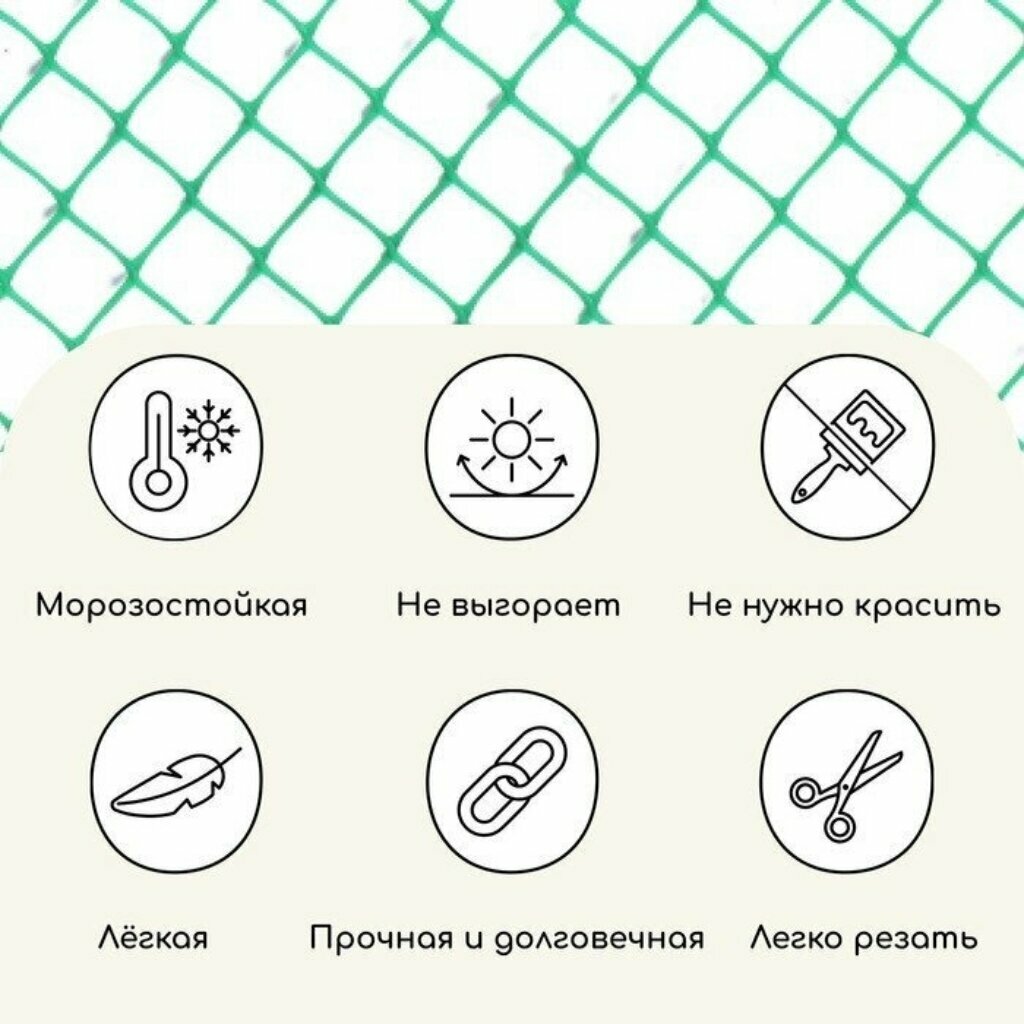 Сетка садовая пластмасса, ячейка 15 х 15 мм, квадратная, 100х2000 см, зеленая, Зеленый луг Удачная