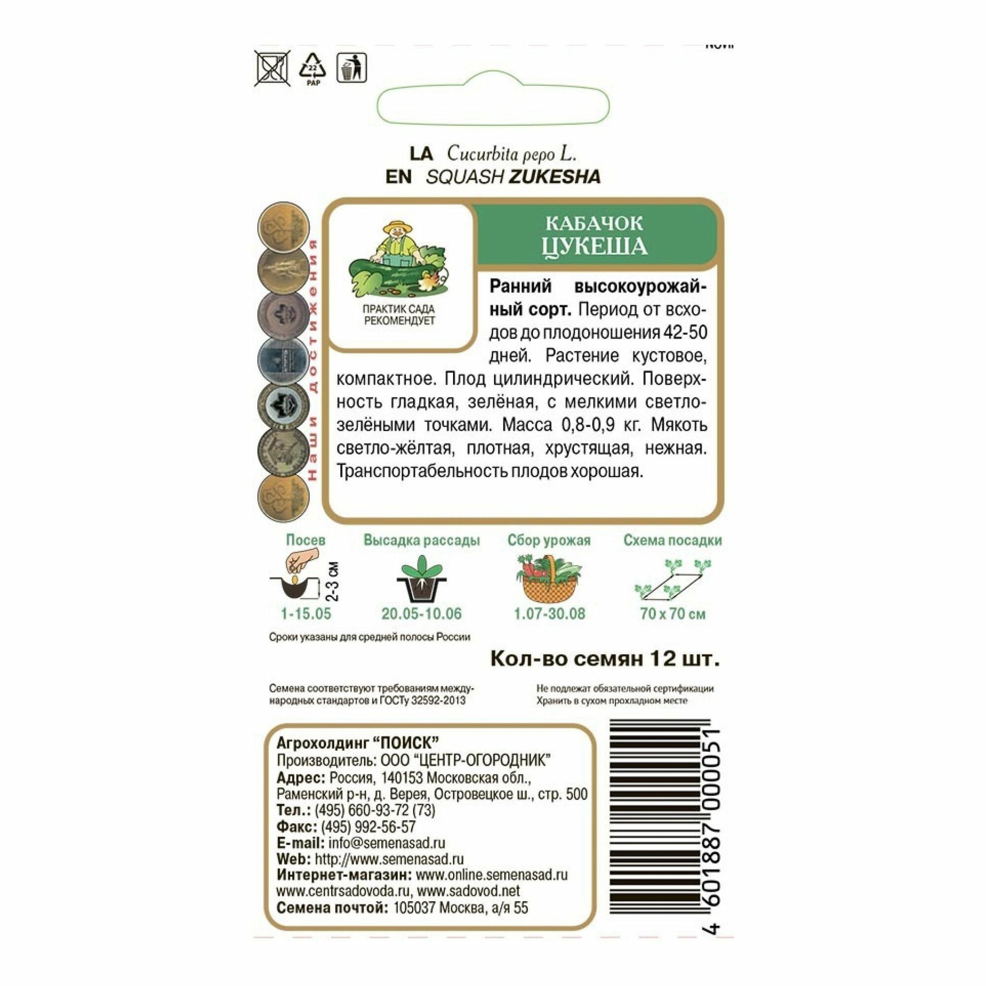 СохранитьКабачок "Поиск" Цукеша 12шт интересное: