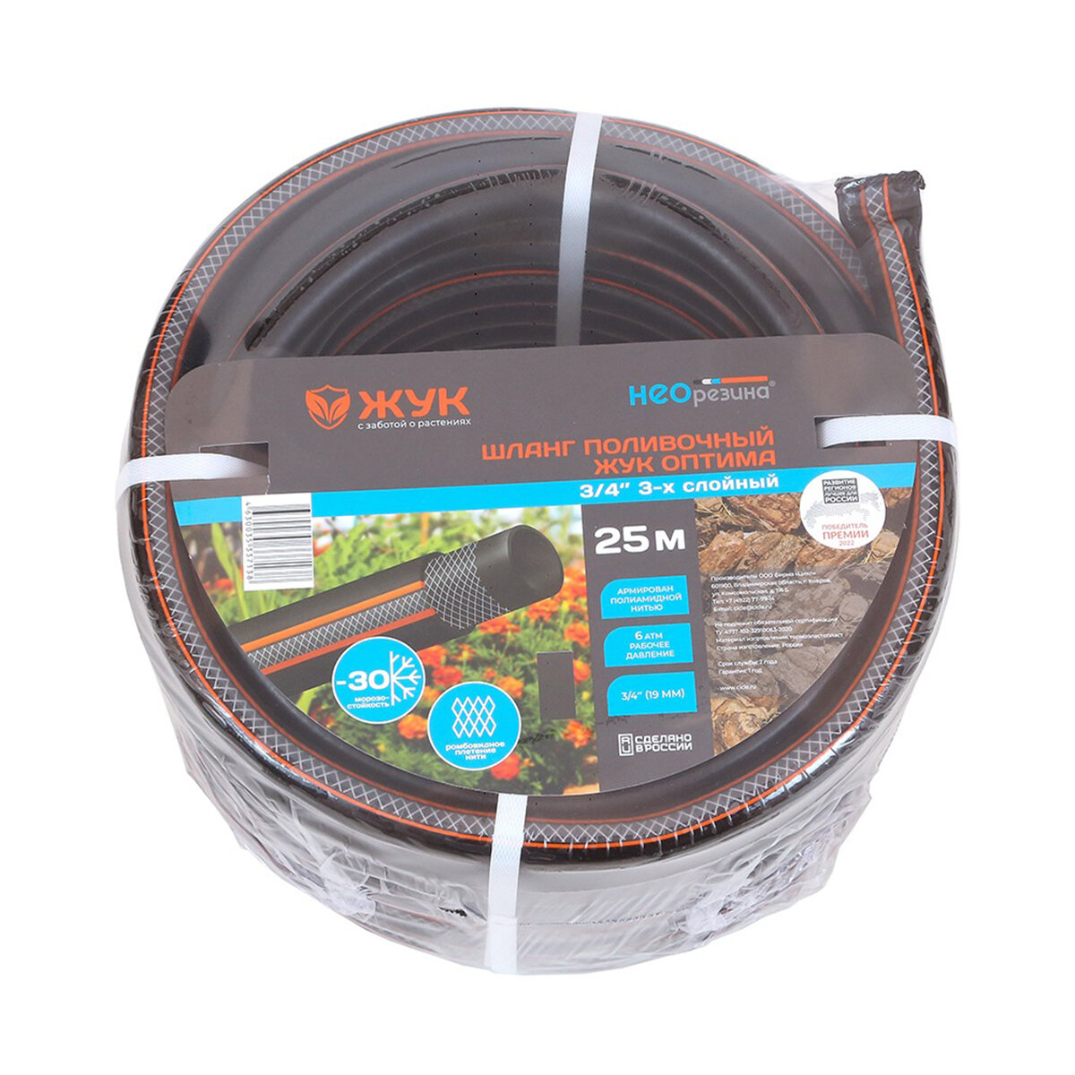 Шланг для полива армированный Жук Оптима, 3 слоя, 3/4", 50 м, черный