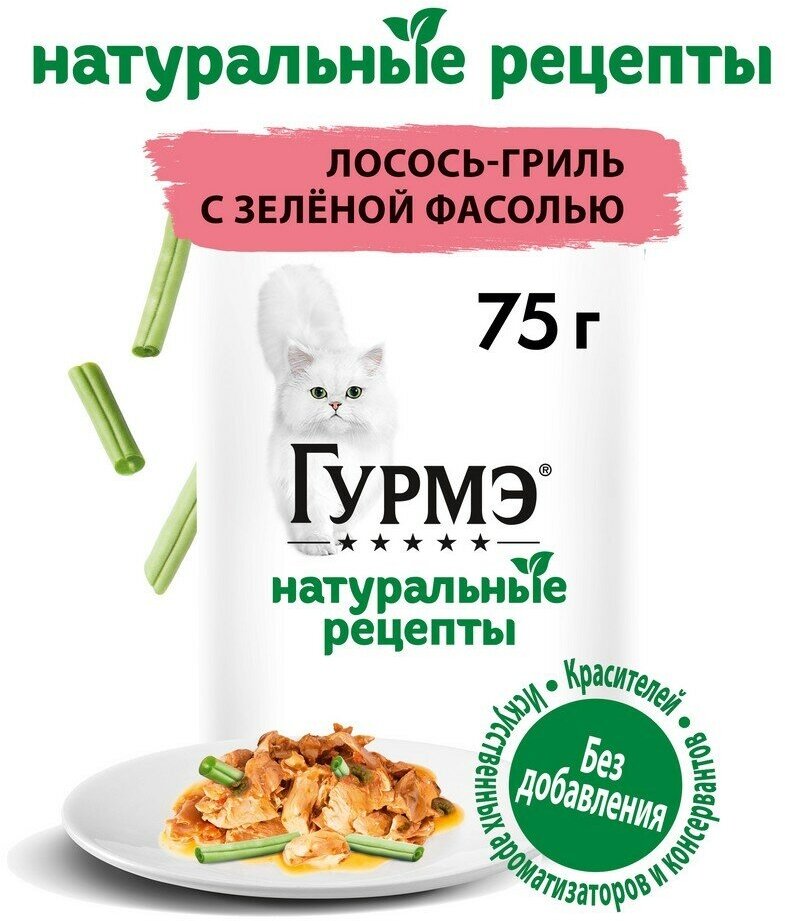 Гурмэ Натуральные рецепты влажный корм для кошек, лосось-гриль с зеленой фасолью - 75 г х 26 шт