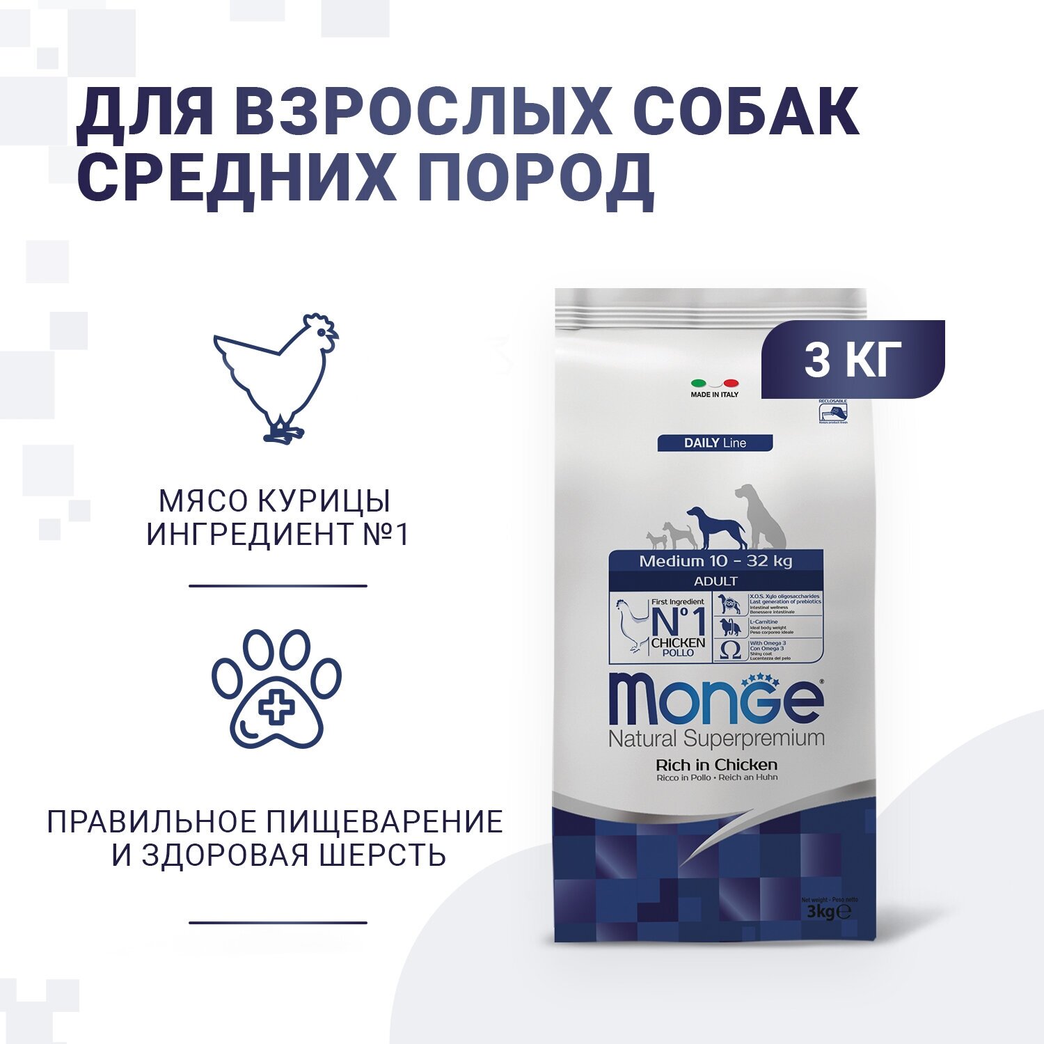 Сухой корм для собак Monge Daily Line, курица 3 кг (для средних пород)