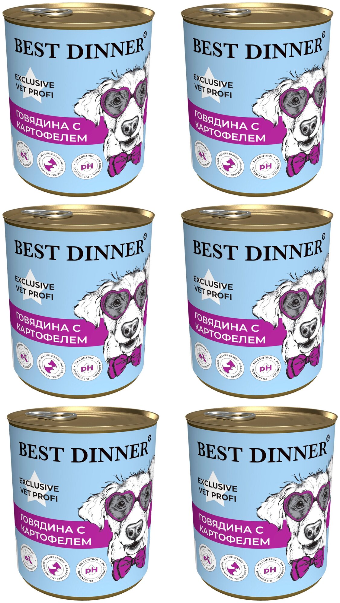 Купить Влажный консервированный корм для собак Best Dinner Бест Диннер Urinary "Говядина с картофелем" Exclusive VET PROFI-340 гп. По 6 шт.