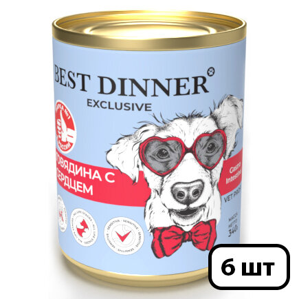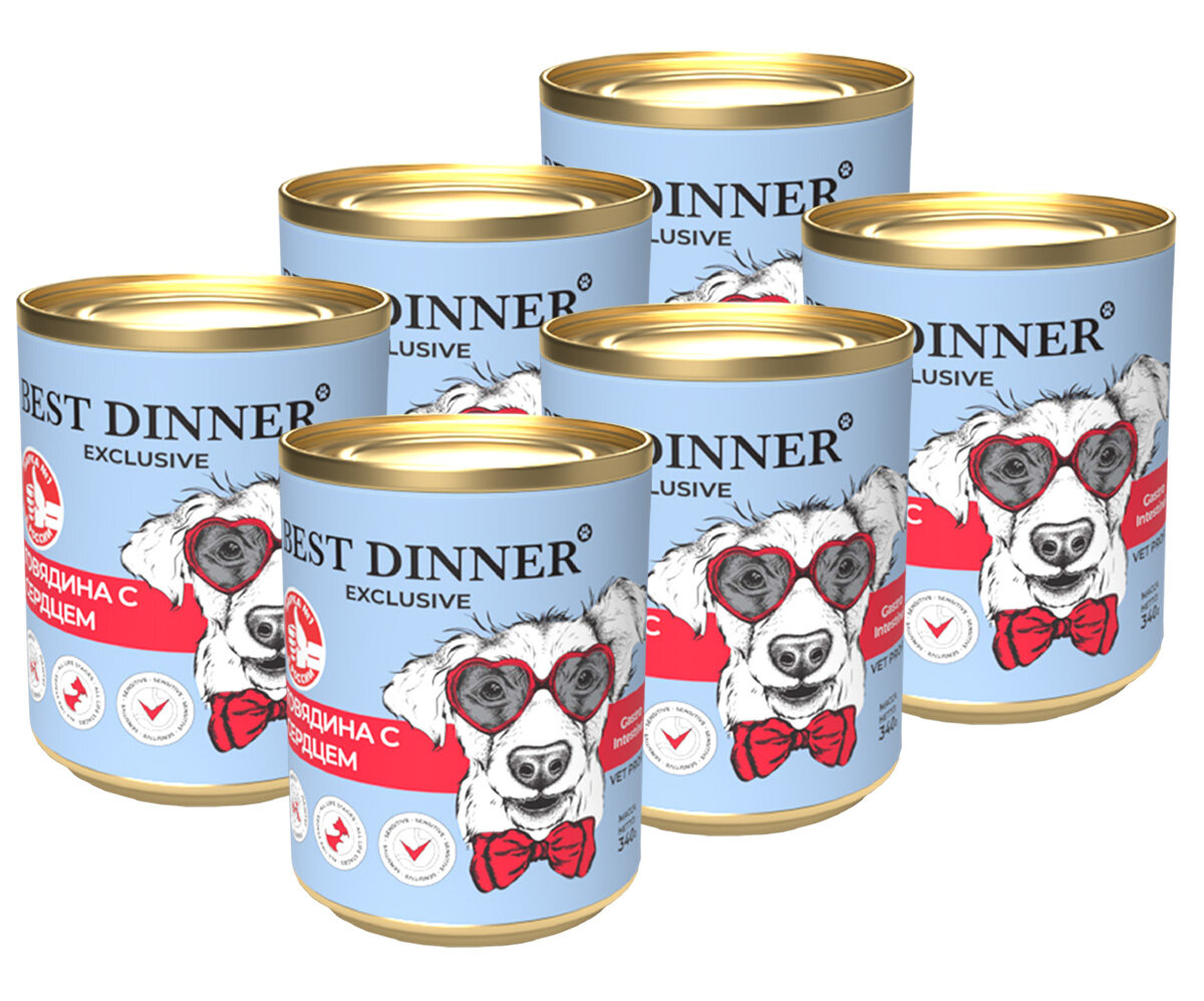 BEST DINNER EXCLUSIVE VET PROFI GASTRO INTESTINAL соб щен с чувств пищ с говядиной и сердцем банка 340 гр х 6 шт