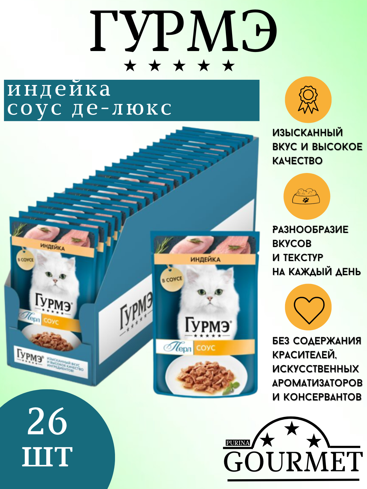 Гурмэ Перл пауч для кошек (кусочки в соусе) Индейка, 75 г. упаковка 26 шт