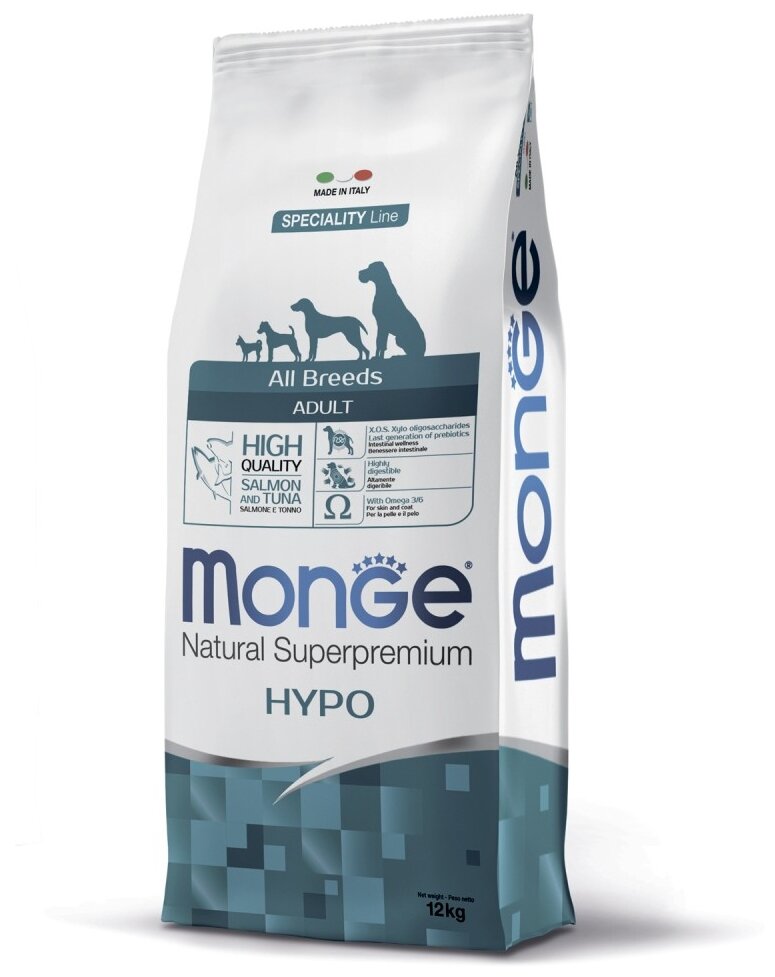 Сухой корм MONGE 12кг для любых собак, лосось с тунцом Dog Speciality Hypo