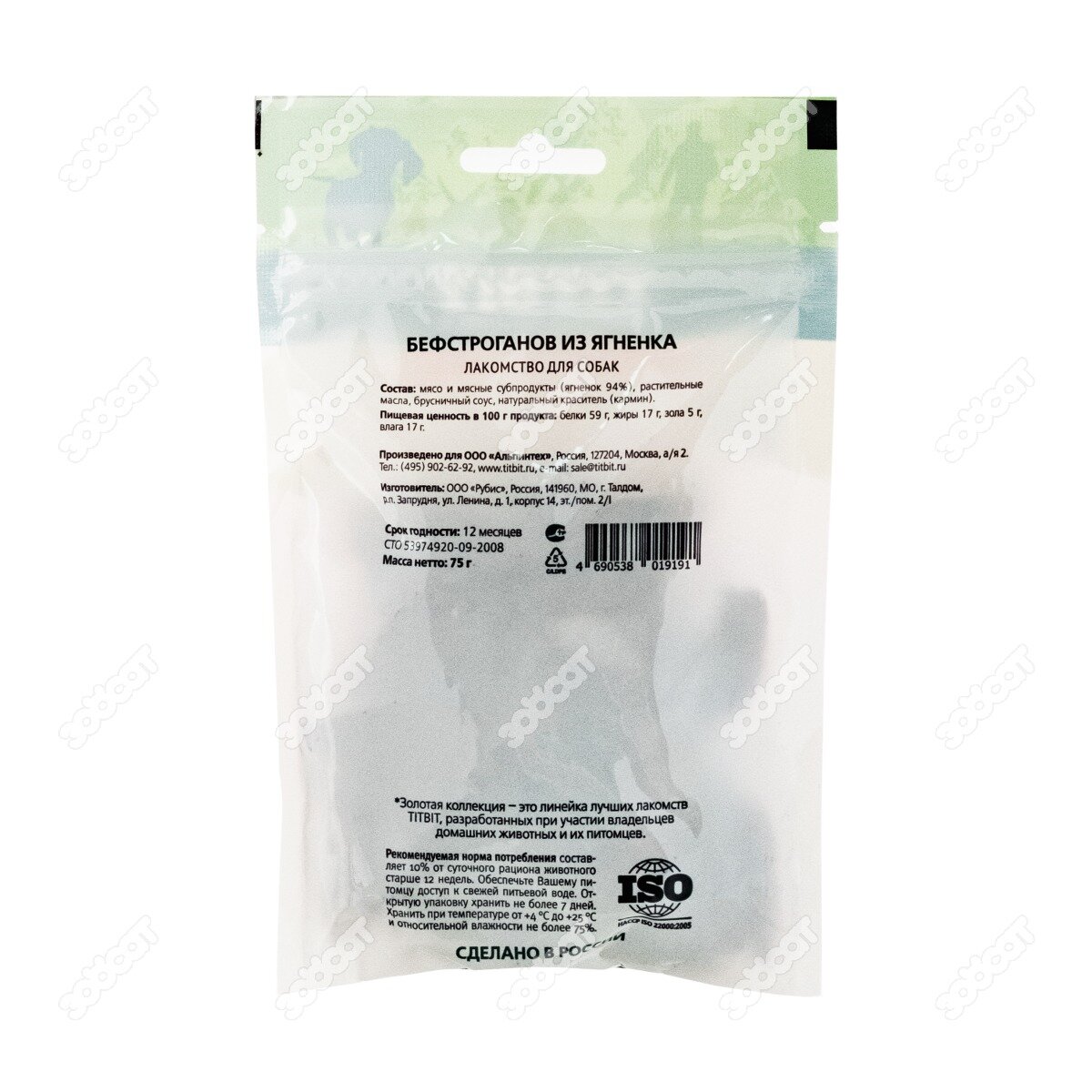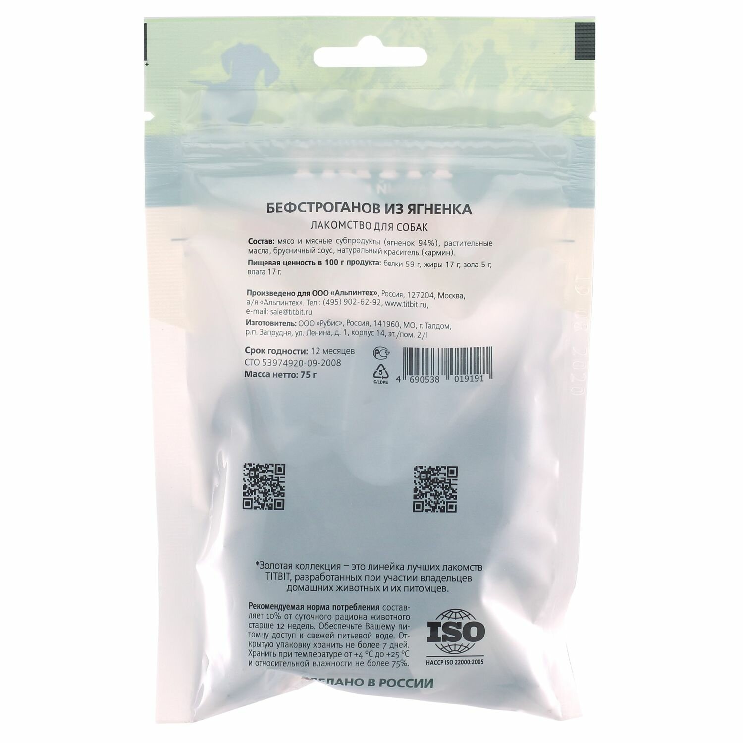 Купить TITBIT Лакомство для собак Бефстроганов из ягненка, Золотая коллекция 75 гр, 1 шт.