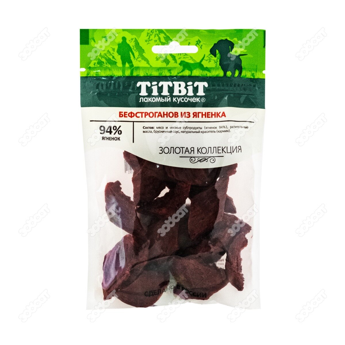 TiTBiT Лакомство для собак Titbit Бефстроганов из ягненка "Золотая коллекция", 75 г