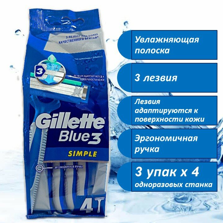 Gillette Blue Simple 3 бритвы одноразовые, 4 шт