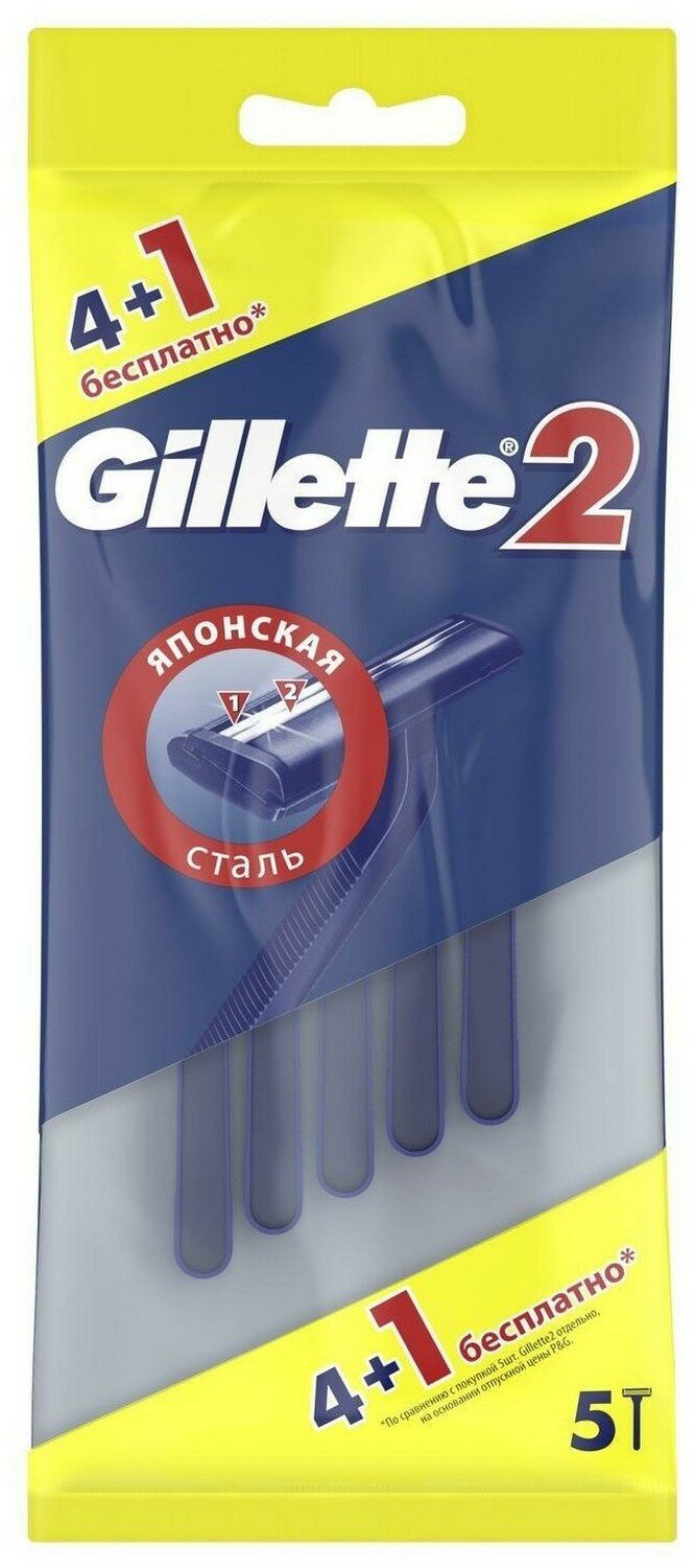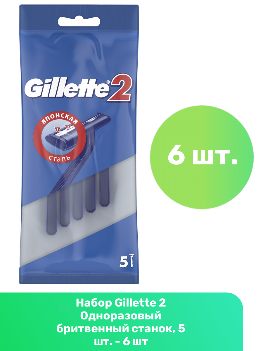 Купить Gillette 2 Одноразовый бритвенный станок, 5 шт. - 6 шт