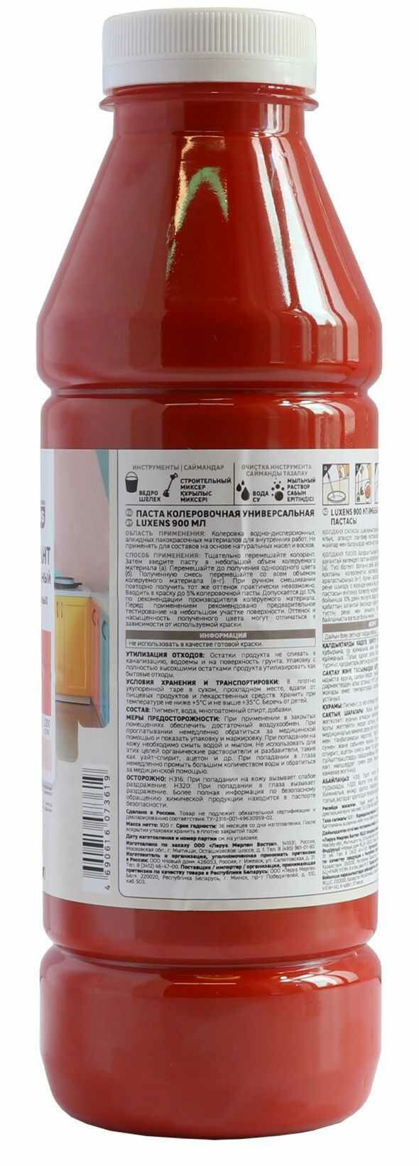 Колеровочная паста Luxens колорант универсальный для интерьерных работ, алый, 0.9 л