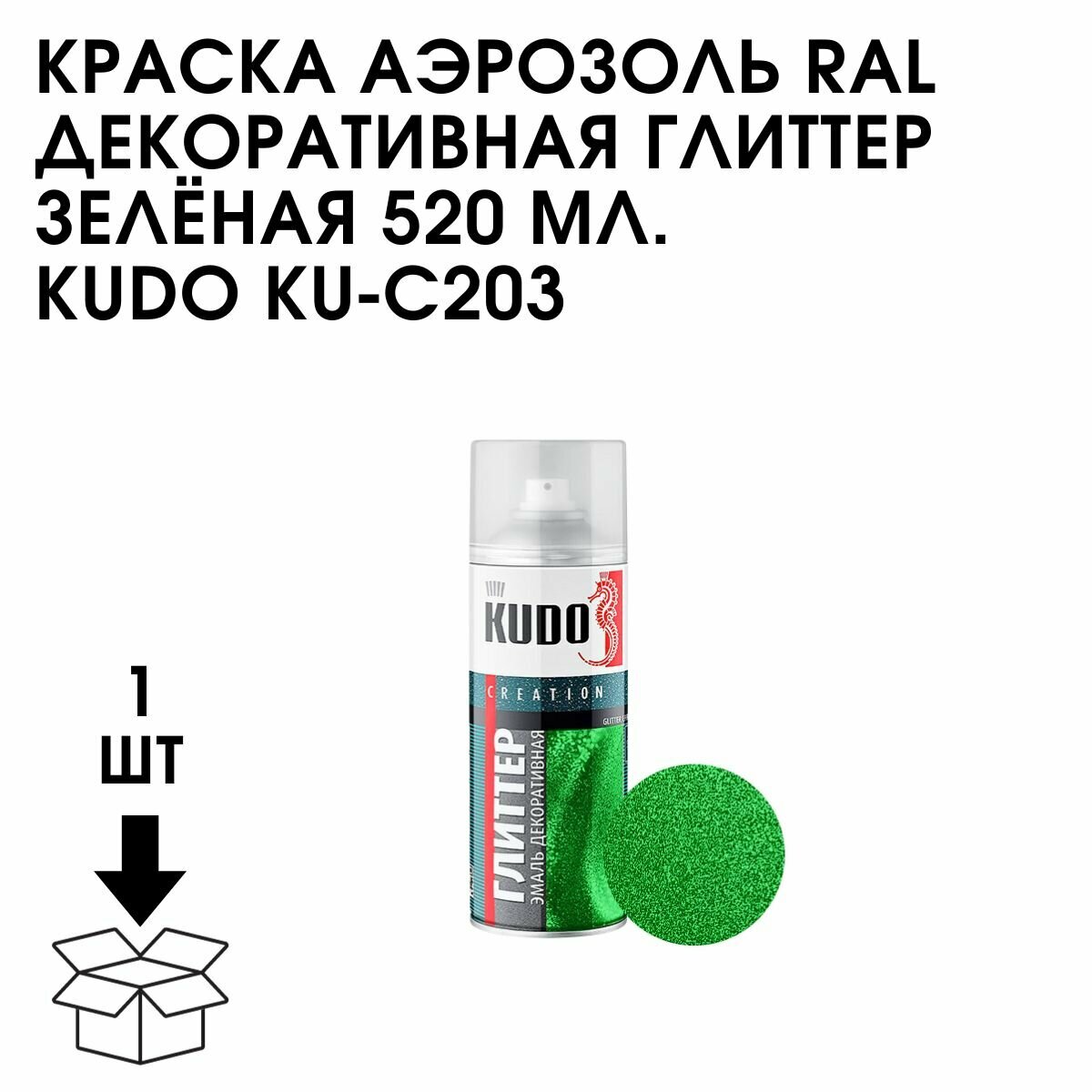 Эльф Филлинг ЗАО Аэрозольная акриловая краска металлик Kudo KU-C203 Глиттер, 520 мл, зеленая