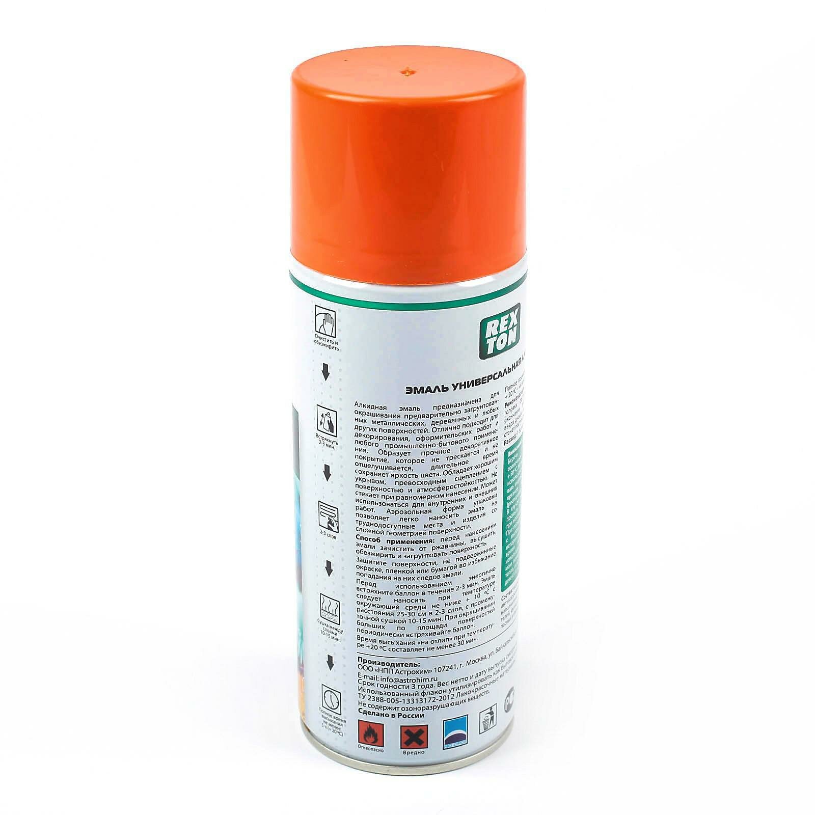 Купить REXTON RT101.30 Эмаль алкидная универсальная, оранжевый, аэрозоль 520 мл REXTON RT101.30