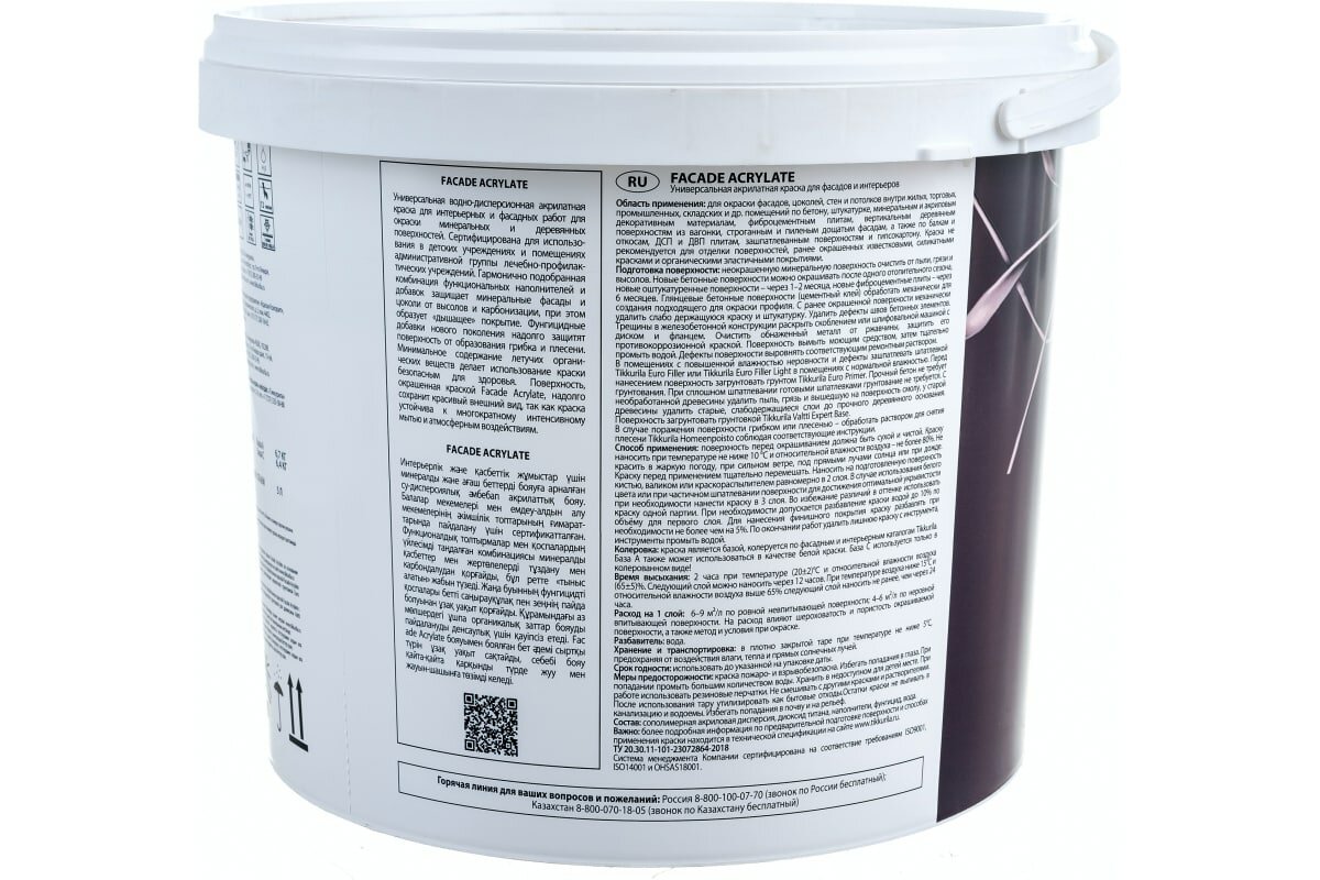 TIKKURILA FACADE ACRYLATE краска акрилатная, универсальная для фасадов и интерьеров, база A (2.7 л)