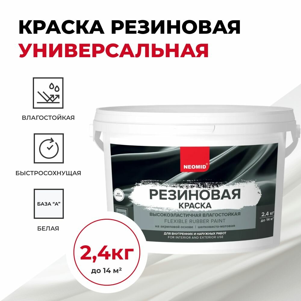 Резиновая краска NEOMID Белый (2,4 кг) / Краска для фасадов, стен и потолков в помещениях повышенной влажности