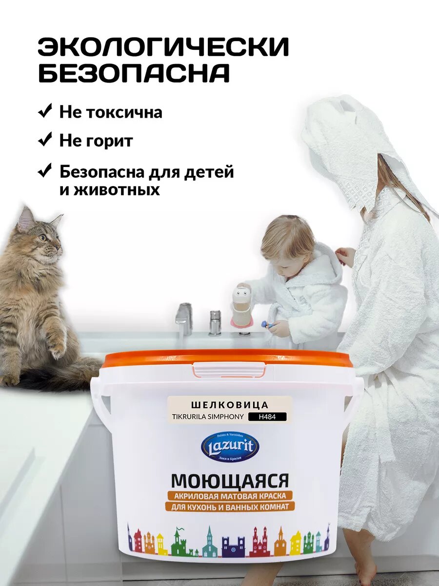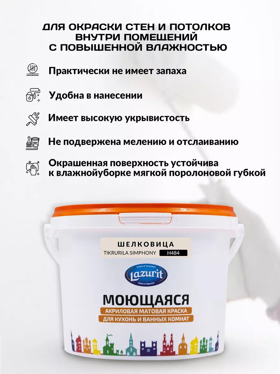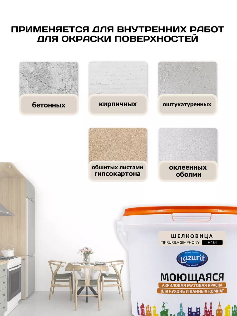 СохранитьLAZURIT Моющаяся краска для кухонь и ванн 3кг/H484 шелковица интересное: