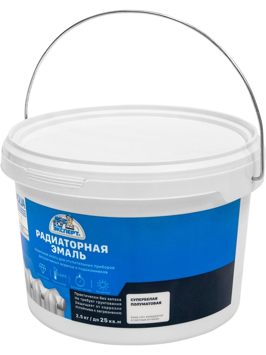 Акриловая эмаль Эксперт радиаторная, полуматовая, белая, База А, 2.5 кг 20167