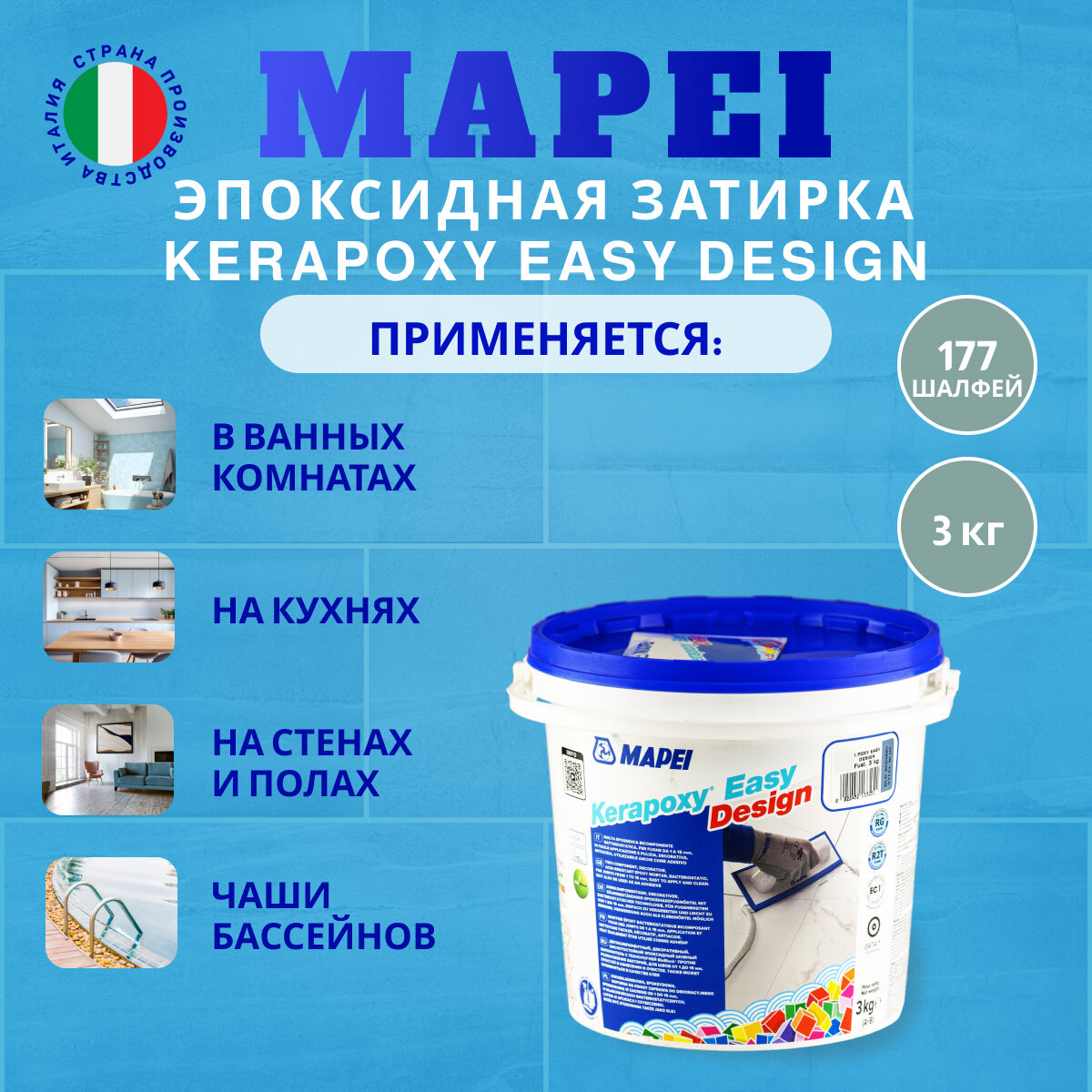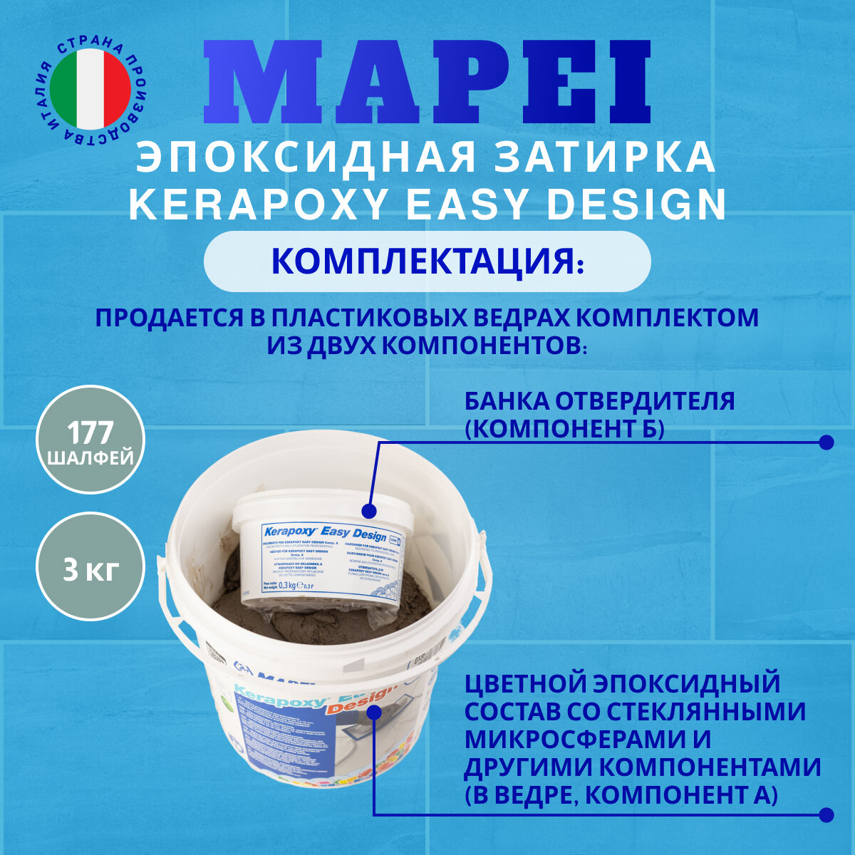 Эпоксидная затирка Kerapoxy EASY Design MAPEI № 177 Шалфей, 3 кг