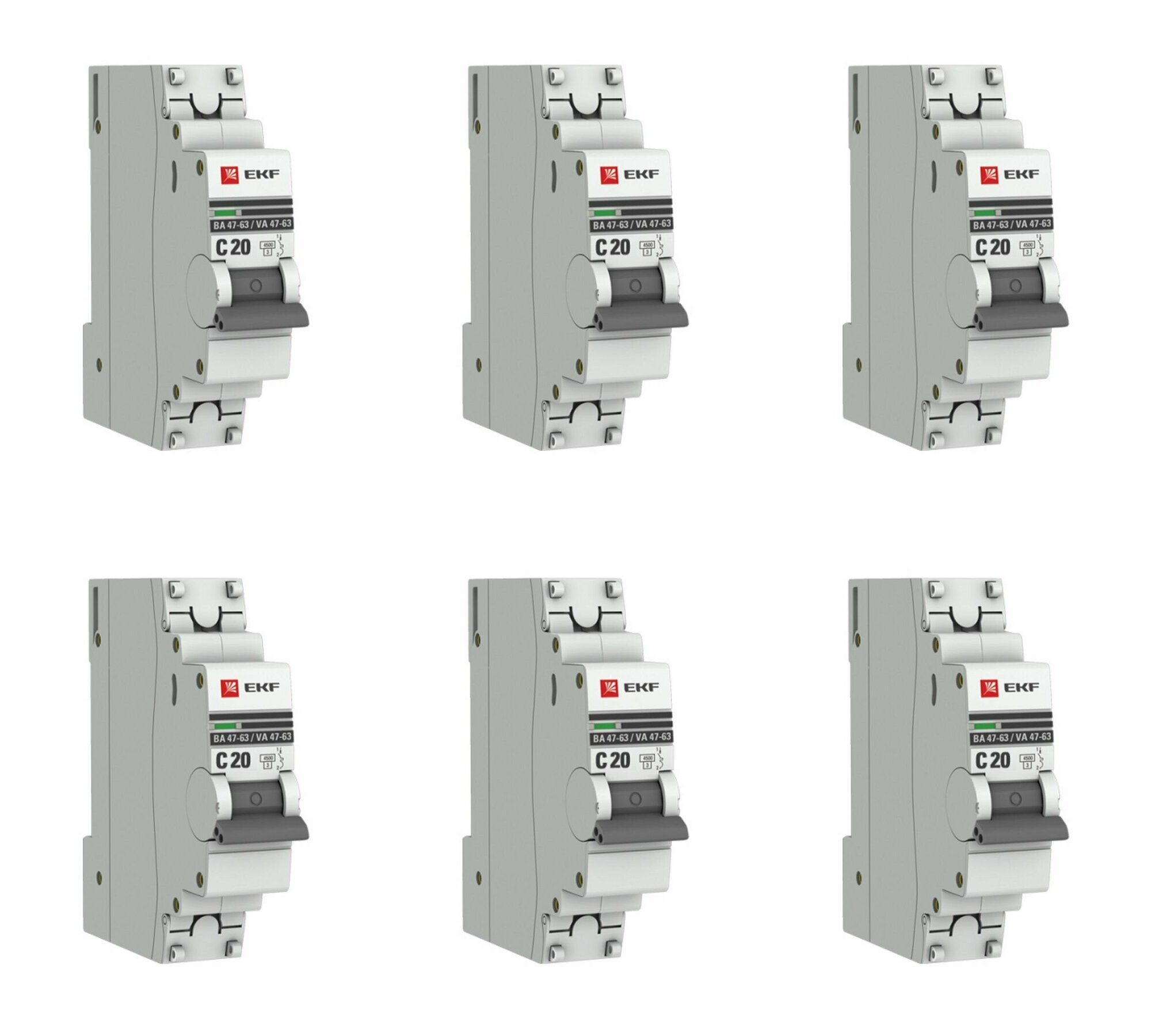 Купить Автоматический выключатель 1P 20А (C) 4,5kA ВА 47-63 EKF PROxima 6 штук