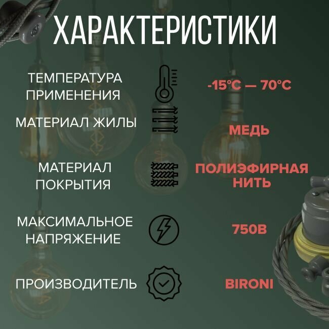 Ниже Вы можете прочитать отзывы на Кабель электрический ретро-проводка витая BIRONI 2х1,5 графит/серый - 5 м., ознакомится с подробными характеристиками, посмотреть интересные обзоры и фотографии на Кабель электрический ретро-проводка витая BIRONI 2х1,5 графит/серый - 5 м..
