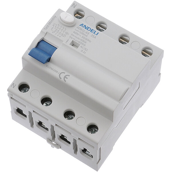 Устройство защитного отключения ANDELI ADB1L-63 тип АС 25А-100мА 400В 4P 6кА ADL03-010