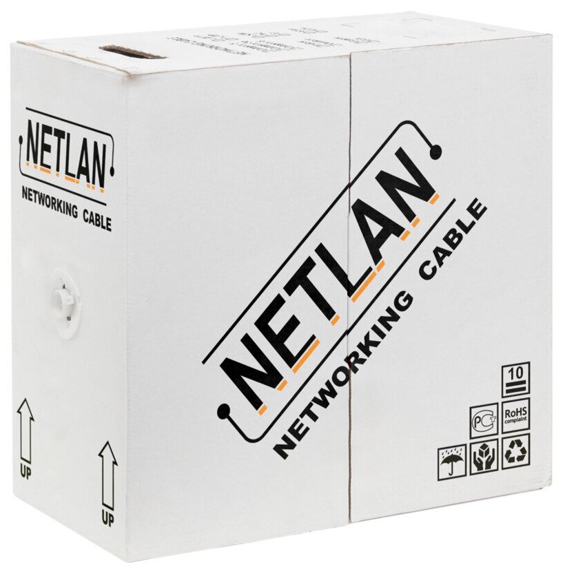 Кабель NETLAN U/UTP 2 пары, Кат.5 (Класс D), 100МГц, одножильный, BC (чистая медь), внутренний, PVC нг(B), серый, 305м
