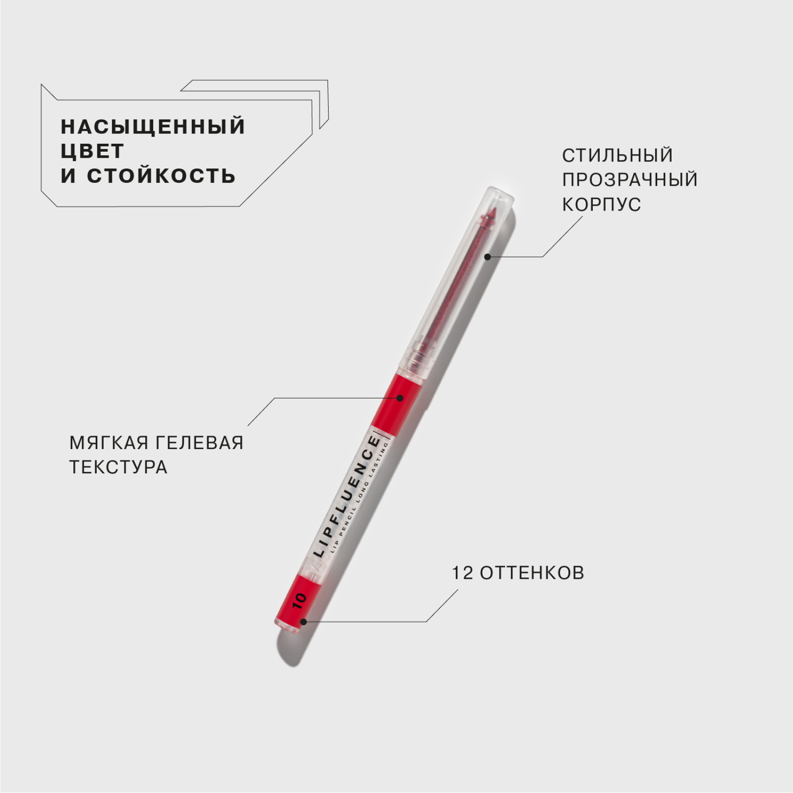 INFLUENCE BEAUTY Карандаш для губ автоматический Lipfluence стойкий, 0,28 г, 10 Красный