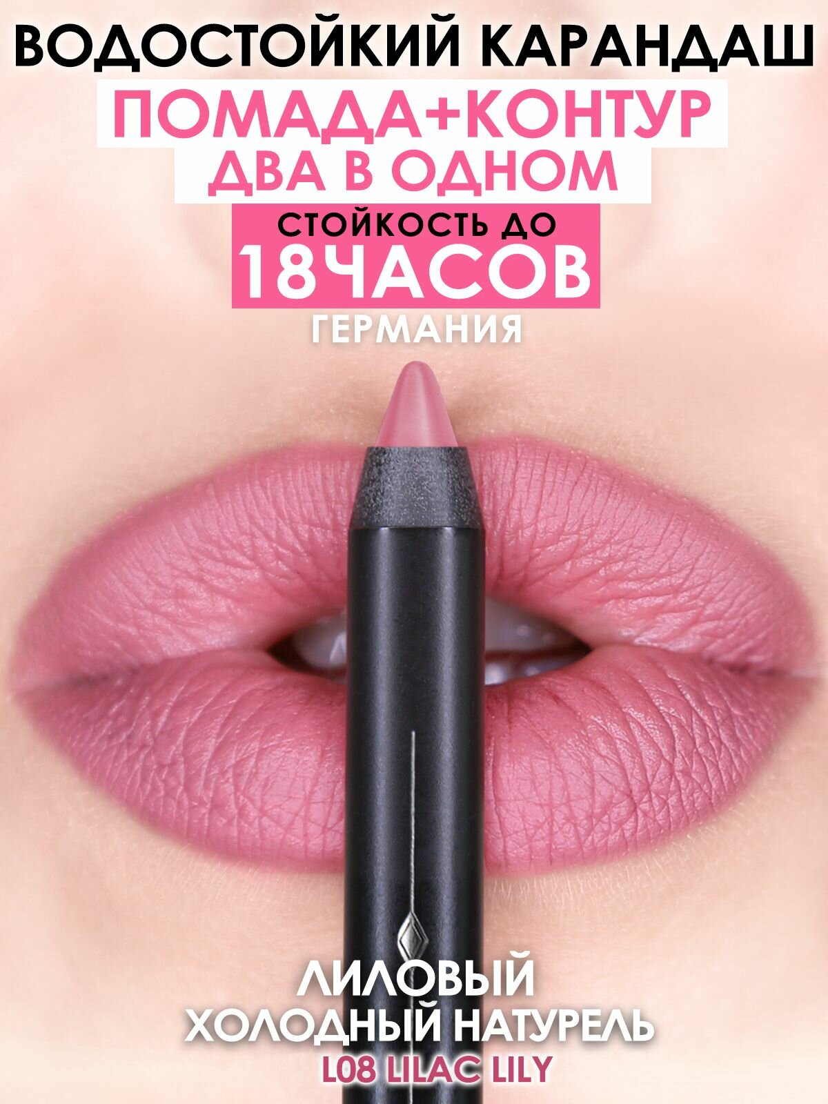 Карандаш-помада "MAKE U MAKE" L08, стойкий, кремовый, лиловый, гипоаллергенный